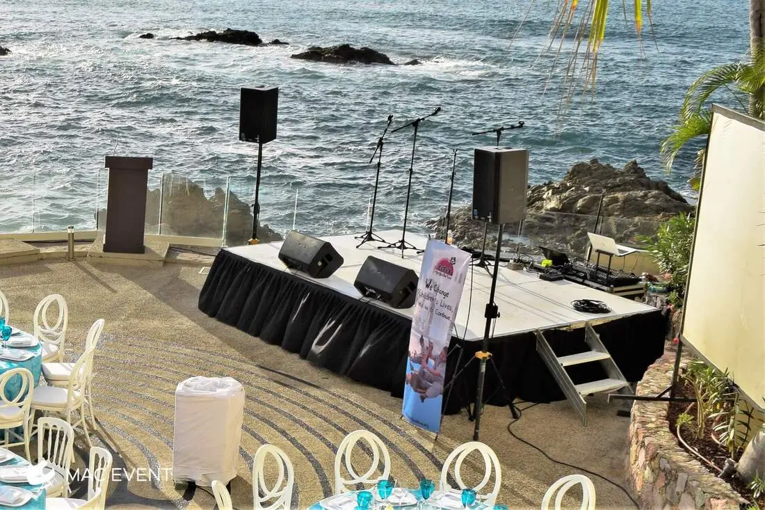 The stage is the focal point of performances, speeches, and special moments at weddings, parties, and corporate events in Bahia de Banderas. Designed to highlight key areas such as live bands, ceremonies, or presentations, this event rental provides both functionality and visual impact. Built with professional materials and customizable finishes, the stage can be adapted to fit any venue or theme. Renting stages in Bahia de Banderas ensures safety, stability, and a polished appearance that elevates your event’s atmosphere. For a professional and memorable presentation, the stage is an essential feature of any celebration.