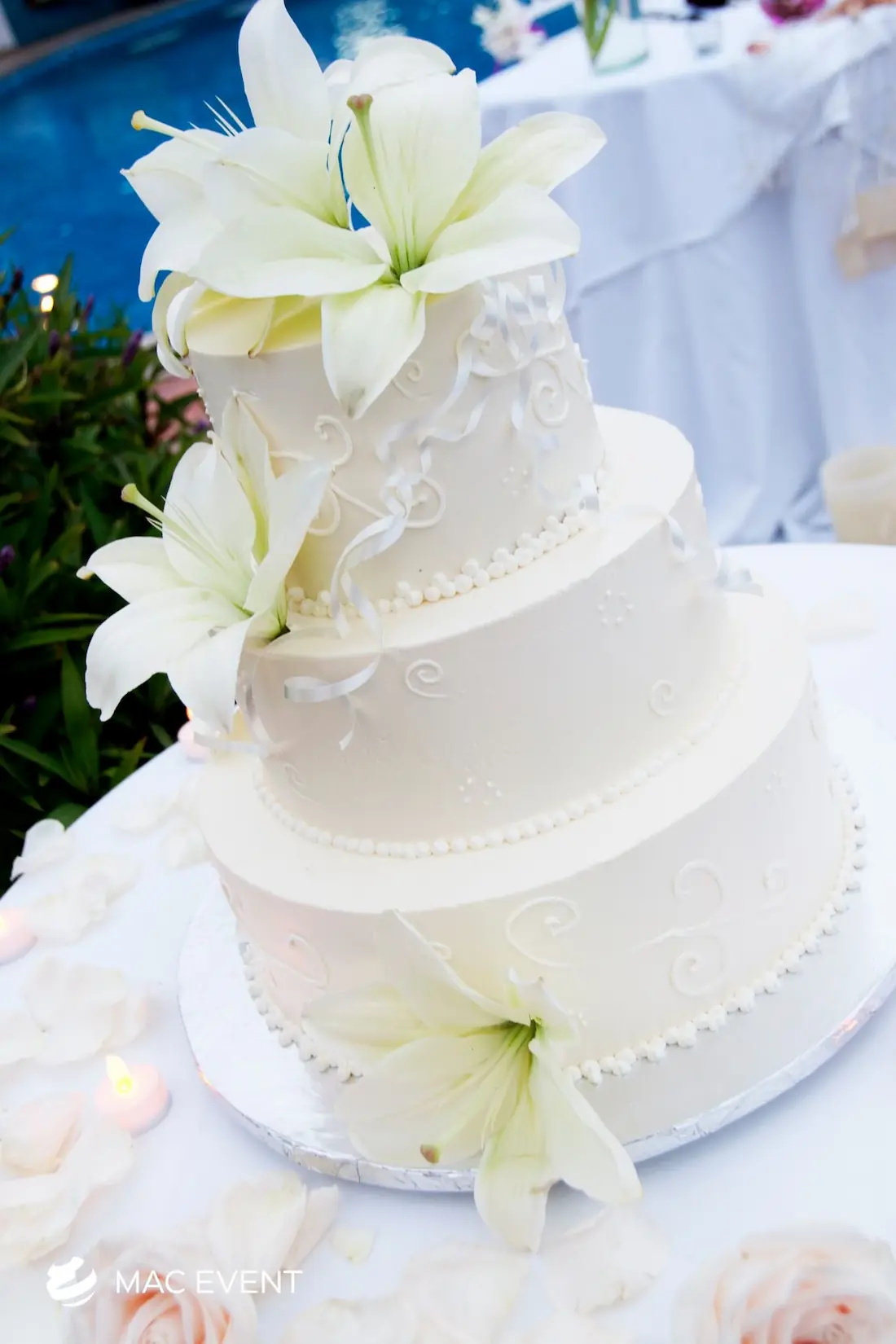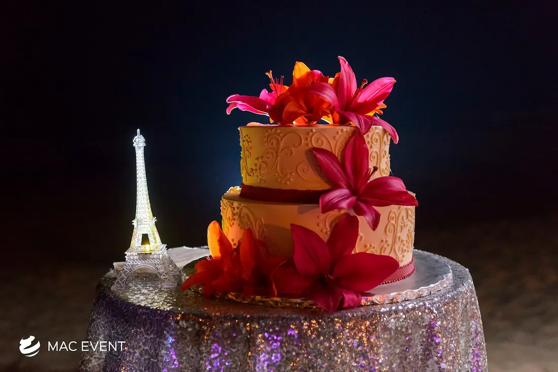 The wedding cake is a timeless symbol of celebration and love at weddings in Bahia de Banderas. Beautifully designed to match your theme, this wedding dessert rental serves as both a visual centerpiece and a sweet ending to your special day. Whether you prefer a traditional tiered design, modern minimalist style, or tropical-inspired flavors, the wedding cake can be customized to reflect your taste and personality. Ordering wedding cakes in Bahia de Banderas ensures professional craftsmanship, premium ingredients, and elegant presentation. For a delicious and memorable highlight that completes your celebration, the wedding cake is an essential element.