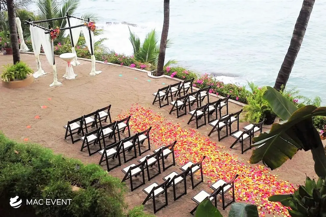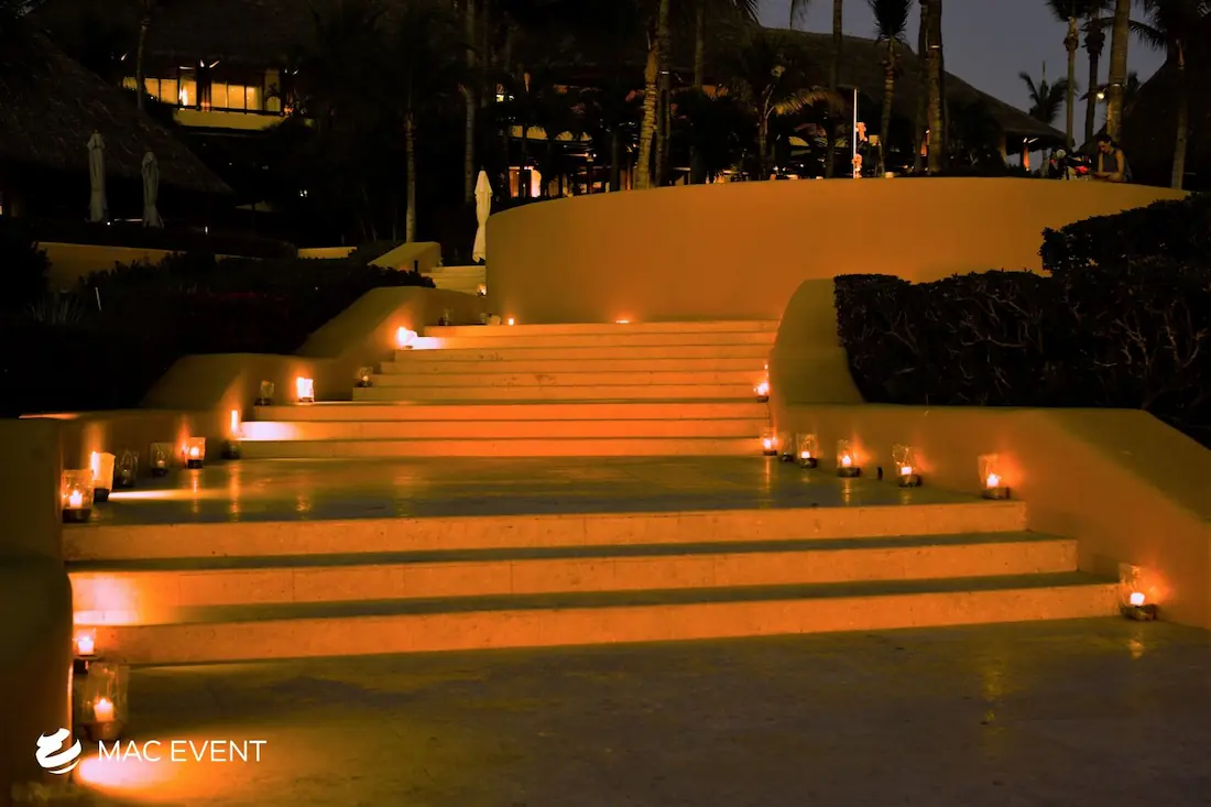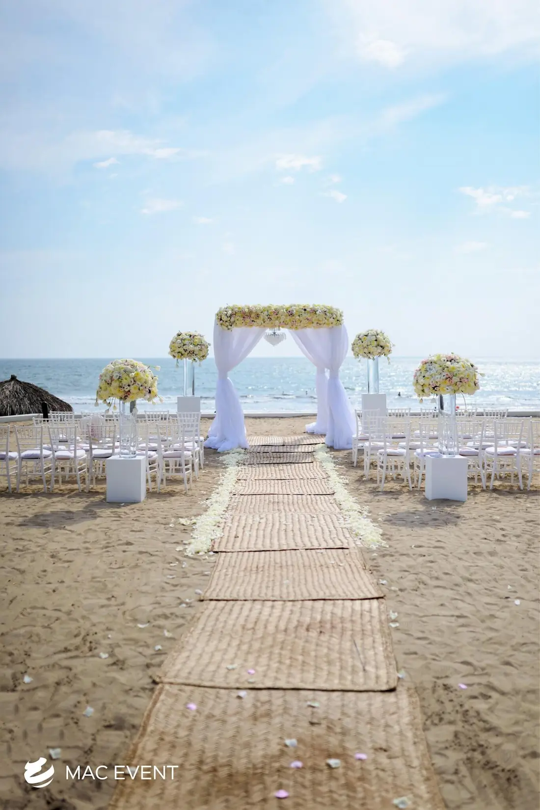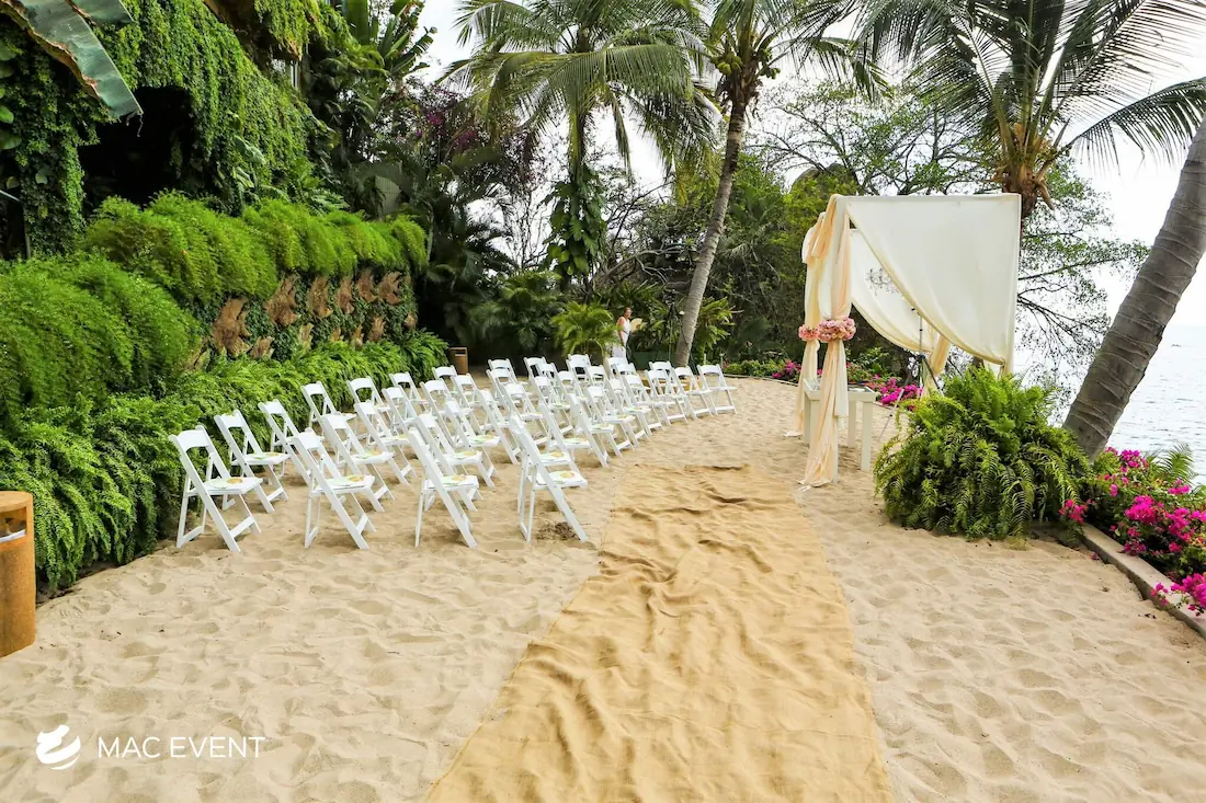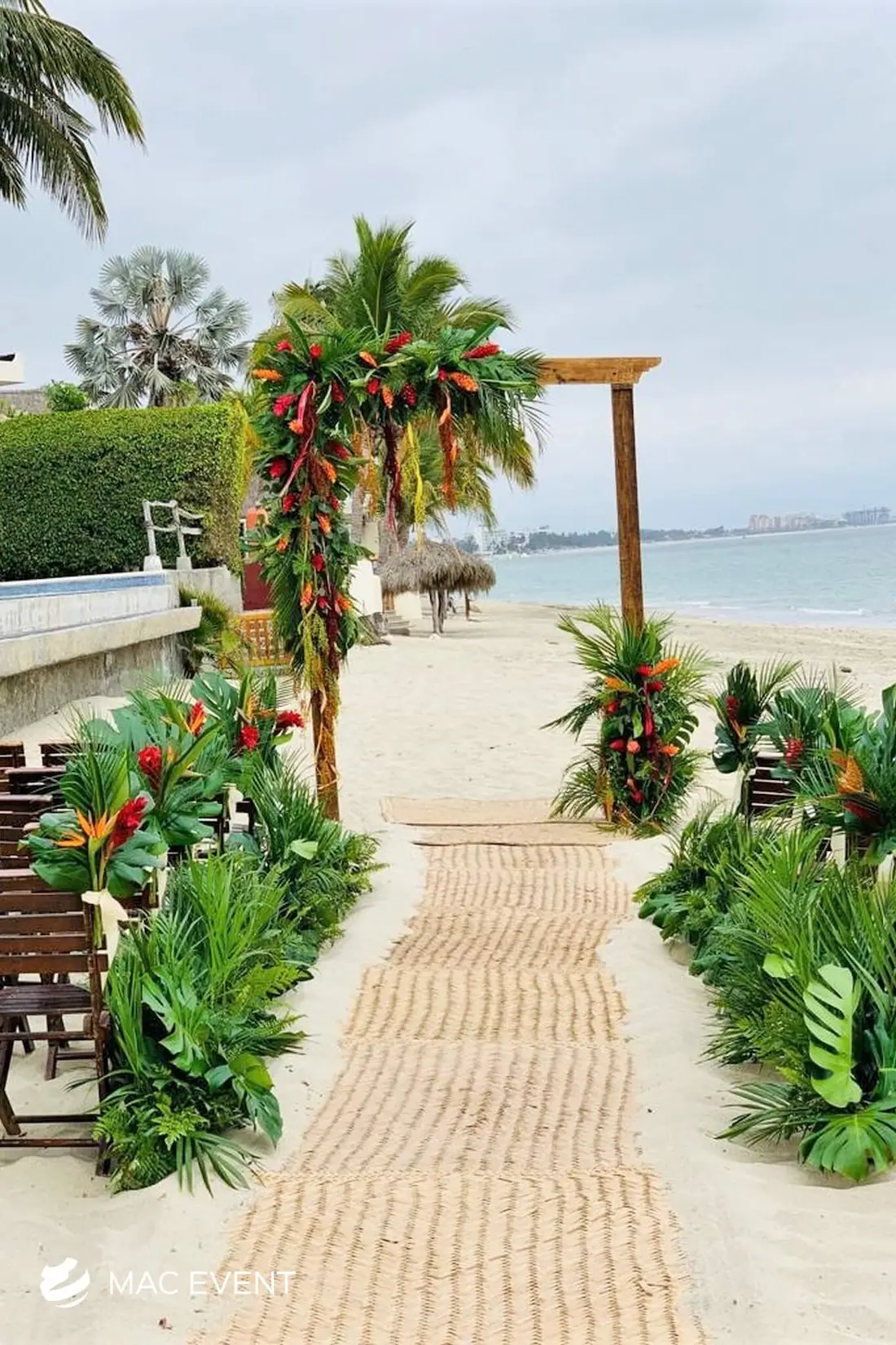 The aisle sets the stage for one of the most meaningful moments of a wedding in Bahia de Banderas. As the path leading to the ceremony, it frames the bride’s entrance and creates a breathtaking focal point for guests. Decorated with petals, candles, or greenery, this wedding décor rental adds beauty and emotion to the event. Renting aisle décor in Bahia de Banderas ensures a coordinated and elegant setup that complements the theme and enhances the overall ceremony design. For a romantic and unforgettable entrance, the aisle is an essential element of every wedding celebration.