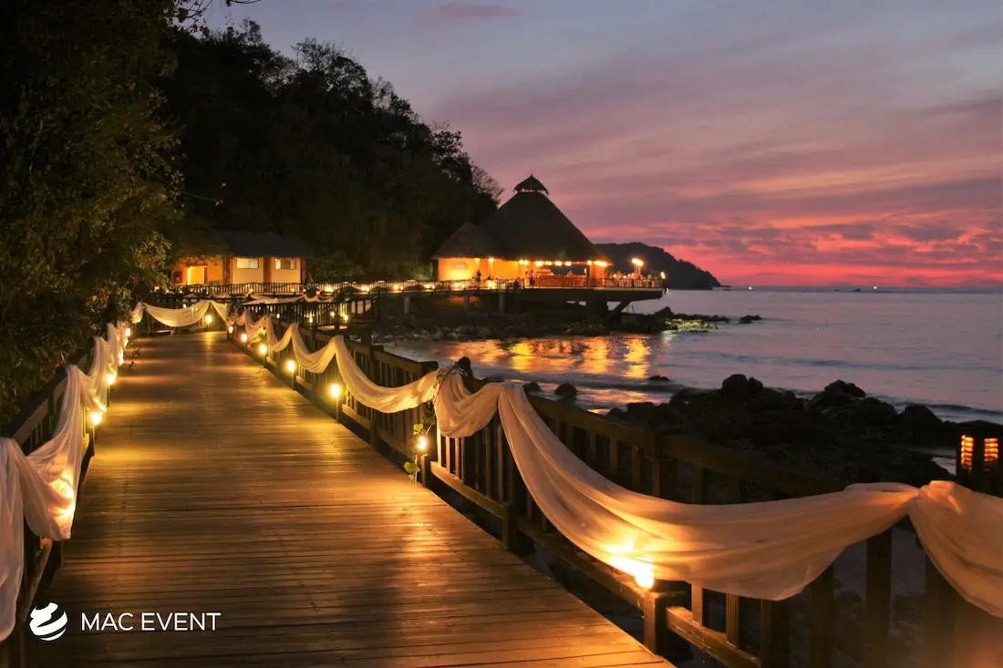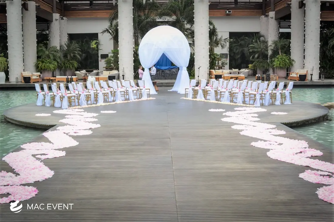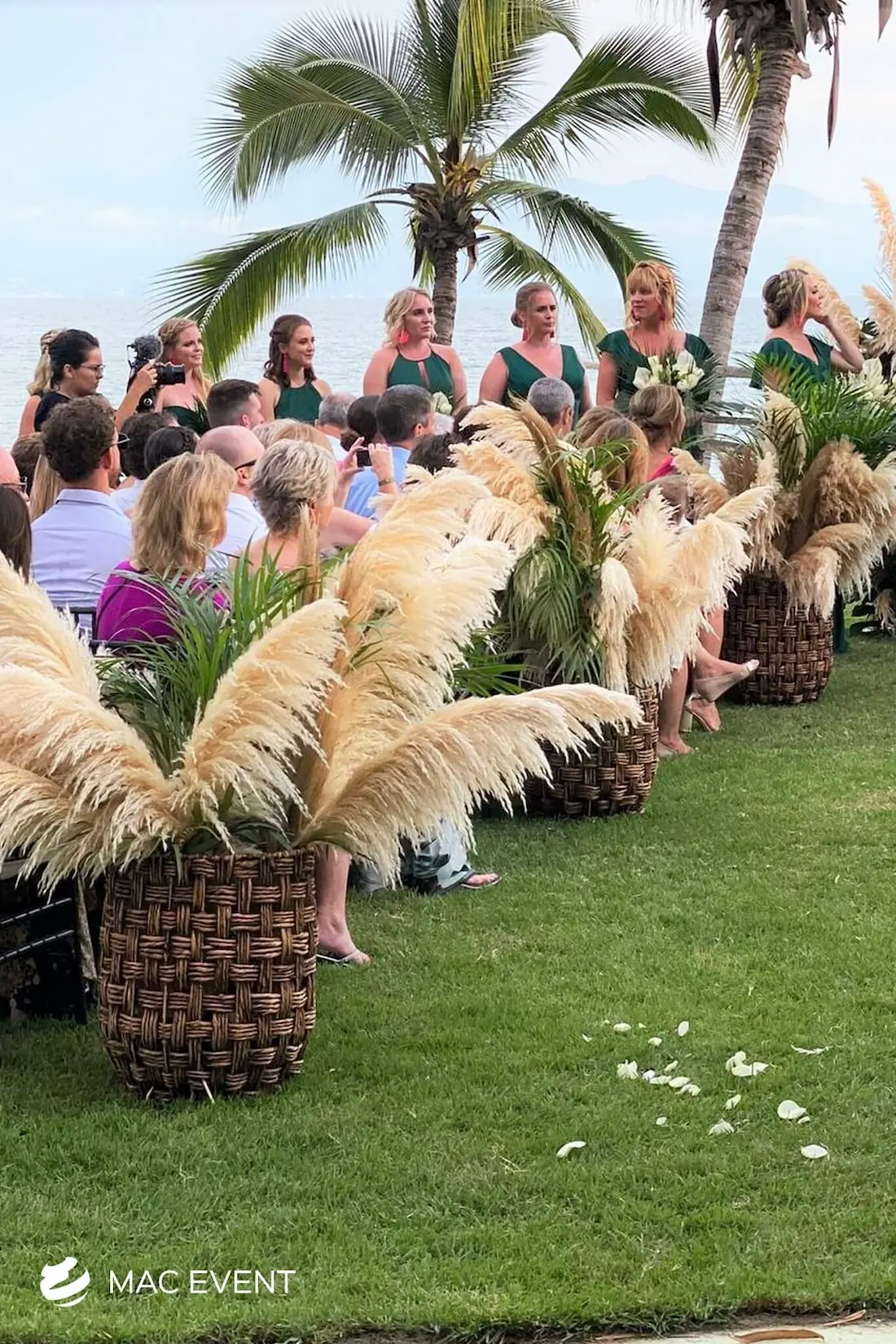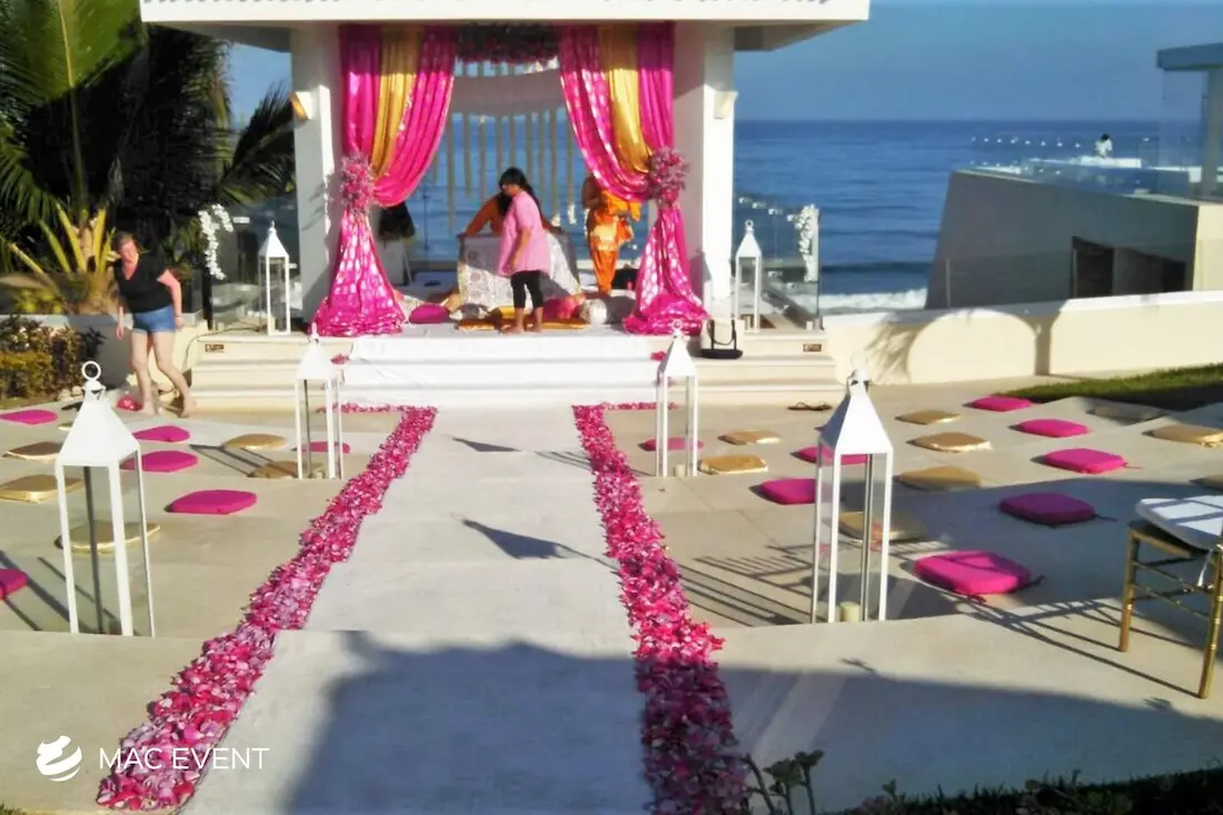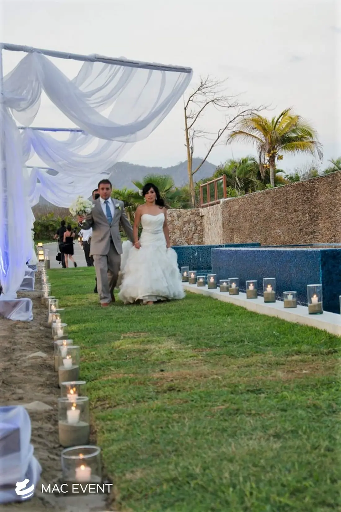 The aisle sets the stage for one of the most meaningful moments of a wedding in Bahia de Banderas. As the path leading to the ceremony, it frames the bride’s entrance and creates a breathtaking focal point for guests. Decorated with petals, candles, or greenery, this wedding décor rental adds beauty and emotion to the event. Renting aisle décor in Bahia de Banderas ensures a coordinated and elegant setup that complements the theme and enhances the overall ceremony design. For a romantic and unforgettable entrance, the aisle is an essential element of every wedding celebration.