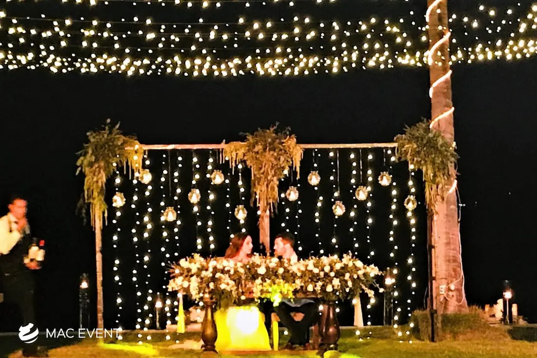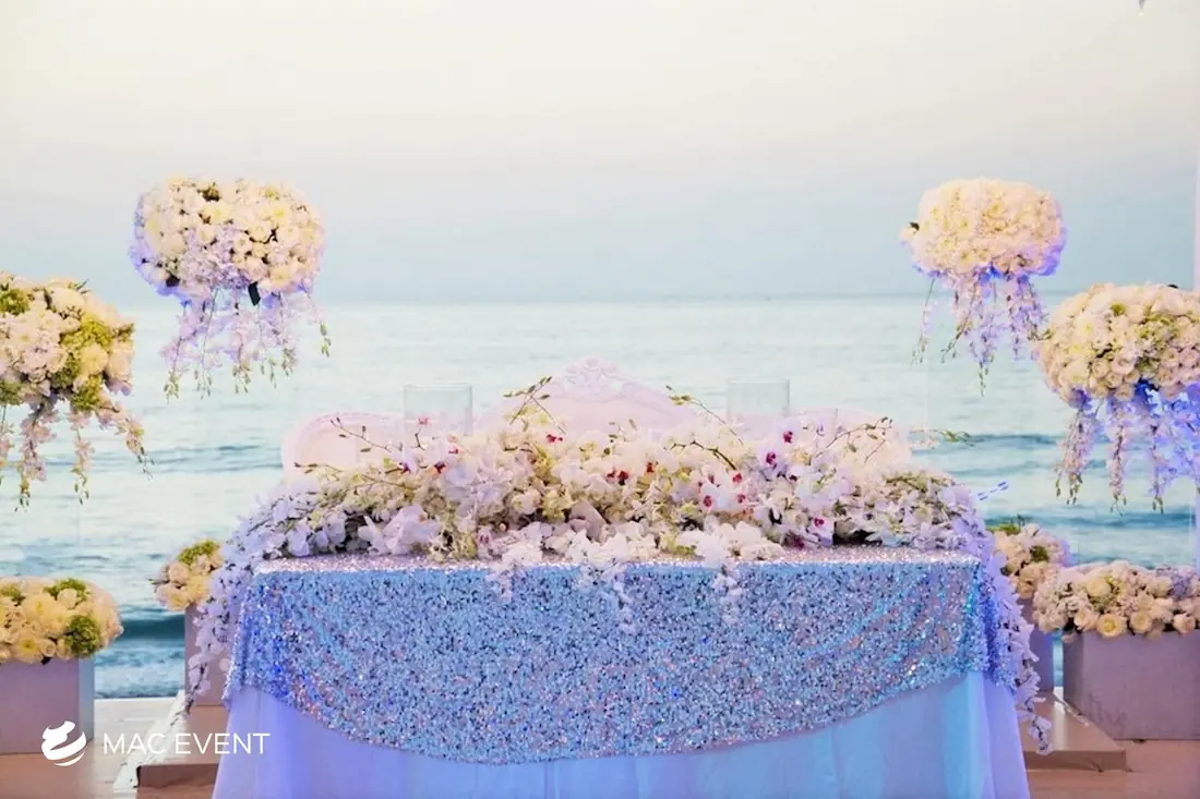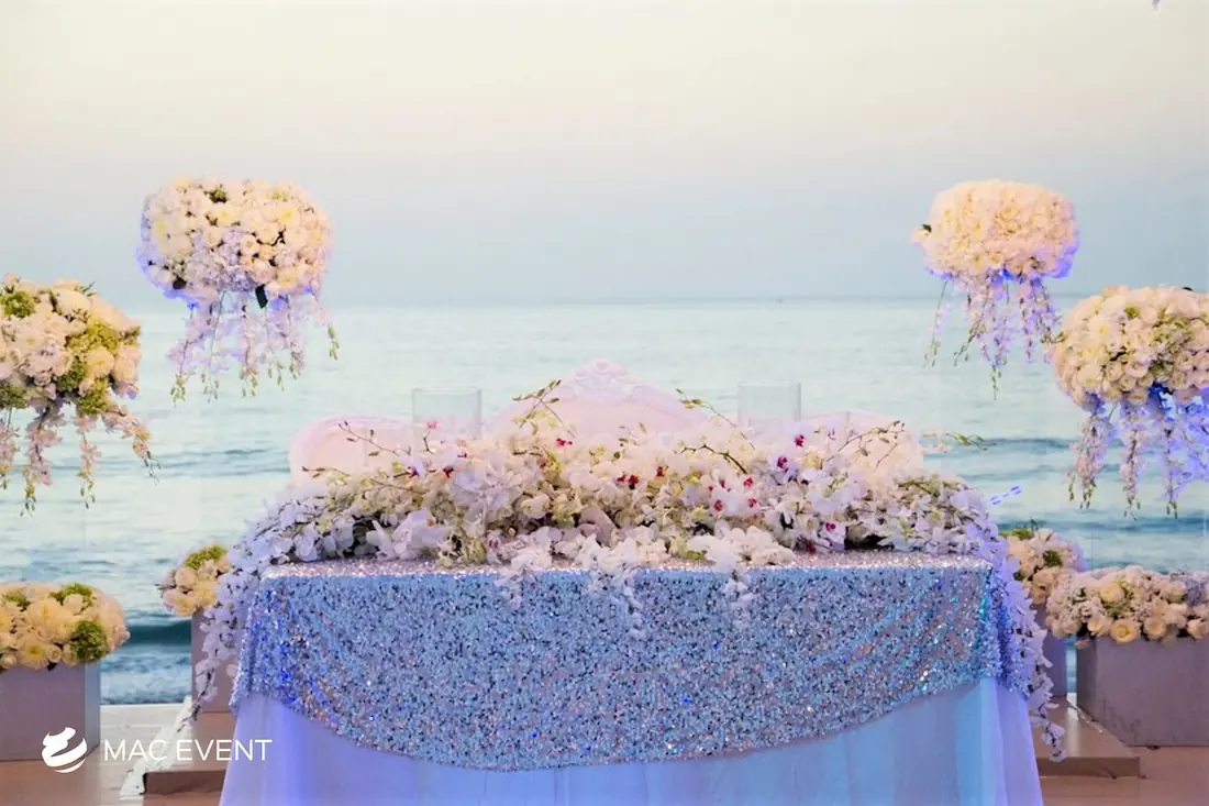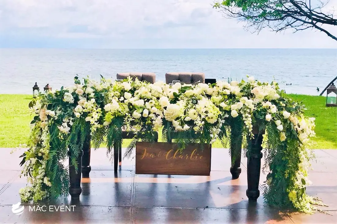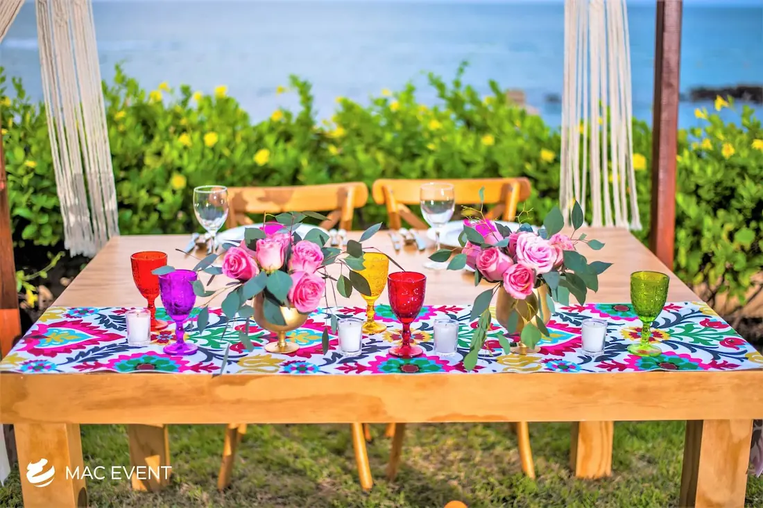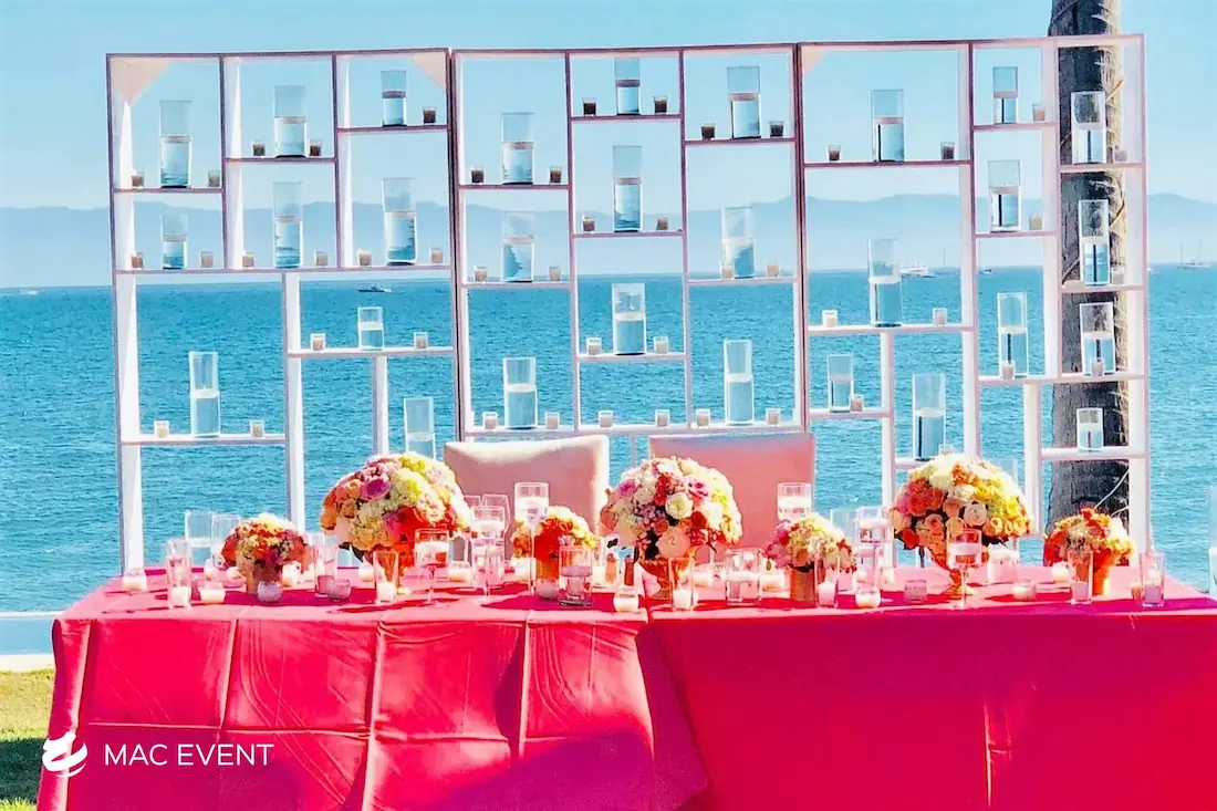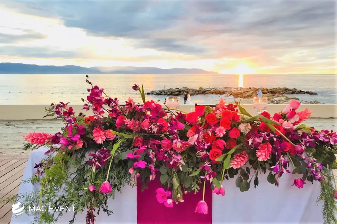 The sweetheart table is a romantic focal point at weddings in Bahia de Banderas, designed exclusively for the newlyweds to share their first moments together as a married couple. This wedding table rental combines elegance and intimacy, often highlighted with floral arrangements, candles, and personalized décor that reflect the couple’s style. Positioned at the center of attention, the sweetheart table enhances both the ambiance and the visual flow of the reception. Renting sweetheart tables in Bahia de Banderas ensures a beautifully coordinated setup that captures the essence of love and celebration. For an elegant and memorable touch, this table is a must-have feature for any wedding.