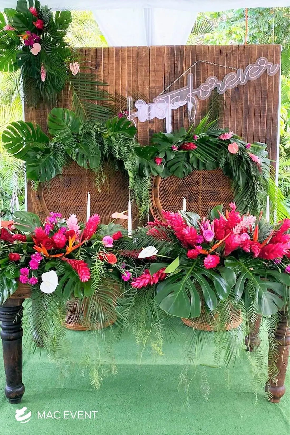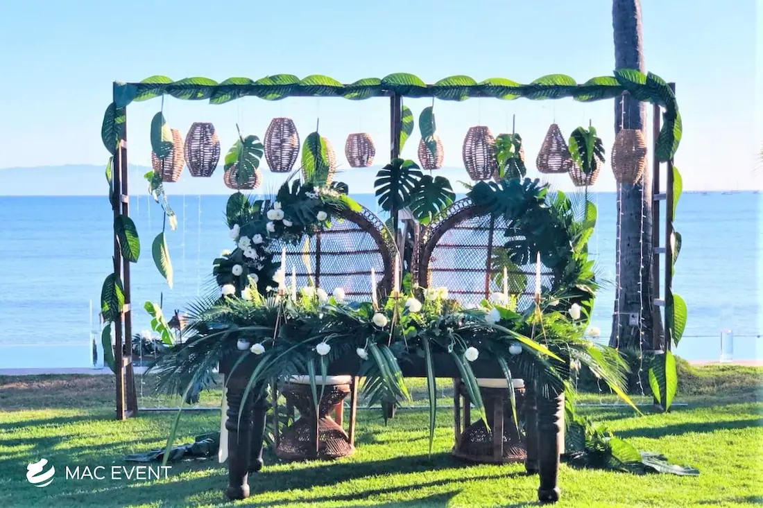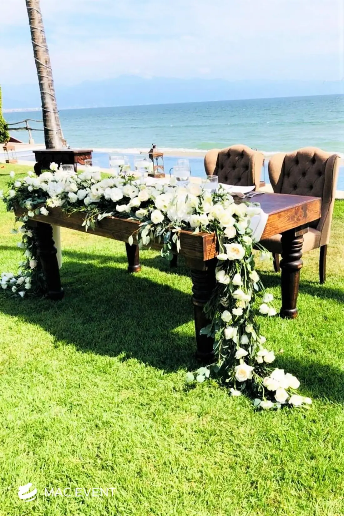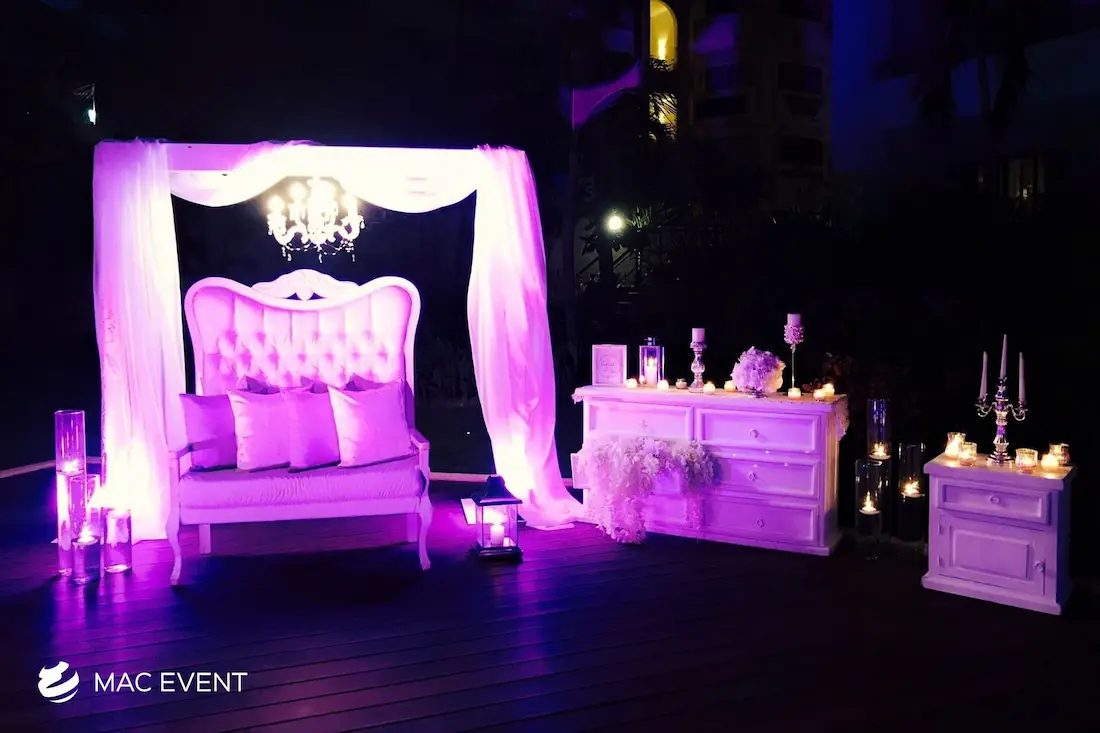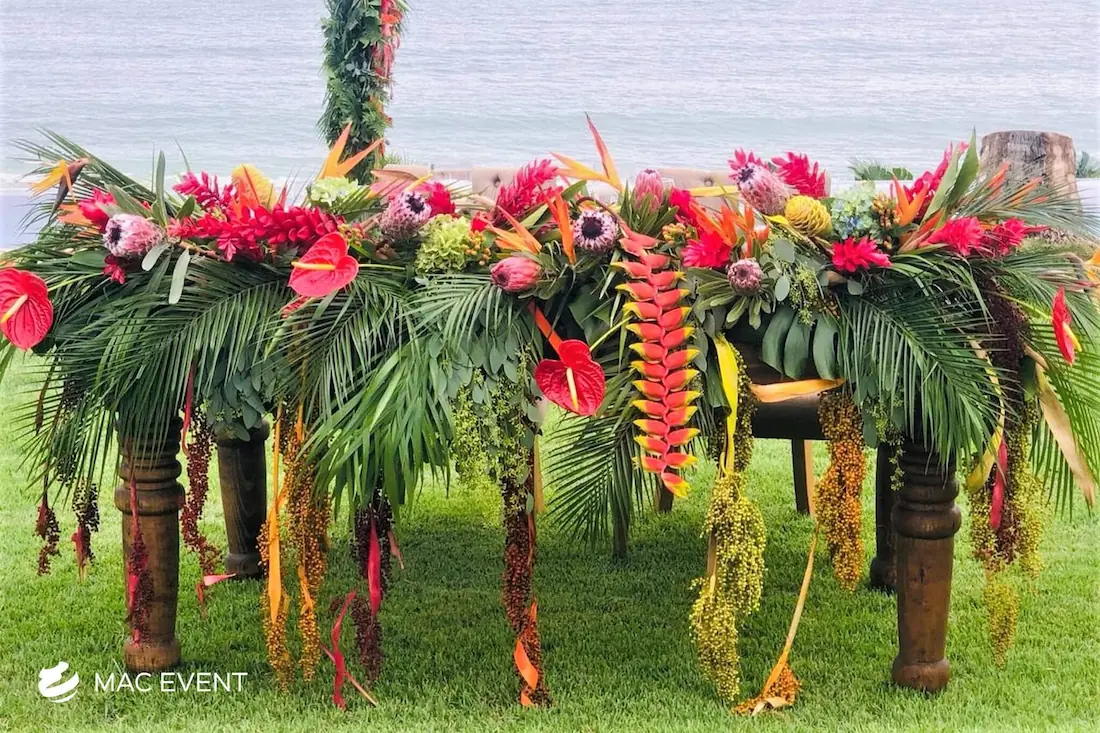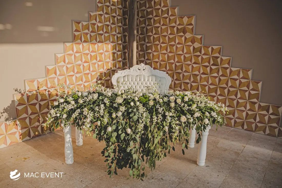 The sweetheart table is a romantic focal point at weddings in Bahia de Banderas, designed exclusively for the newlyweds to share their first moments together as a married couple. This wedding table rental combines elegance and intimacy, often highlighted with floral arrangements, candles, and personalized décor that reflect the couple’s style. Positioned at the center of attention, the sweetheart table enhances both the ambiance and the visual flow of the reception. Renting sweetheart tables in Bahia de Banderas ensures a beautifully coordinated setup that captures the essence of love and celebration. For an elegant and memorable touch, this table is a must-have feature for any wedding.
