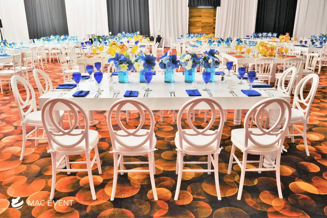 A phoenix chair offers a sleek, contemporary look for weddings, parties, and corporate events in Bahia de Banderas. Its circular back design and polished finish bring a modern sense of elegance to any setting. Lightweight yet durable, it combines comfort with visual appeal. Renting phoenix chairs in Bahia de Banderas adds a sophisticated, stylish touch that enhances both formal and trendy event spaces.