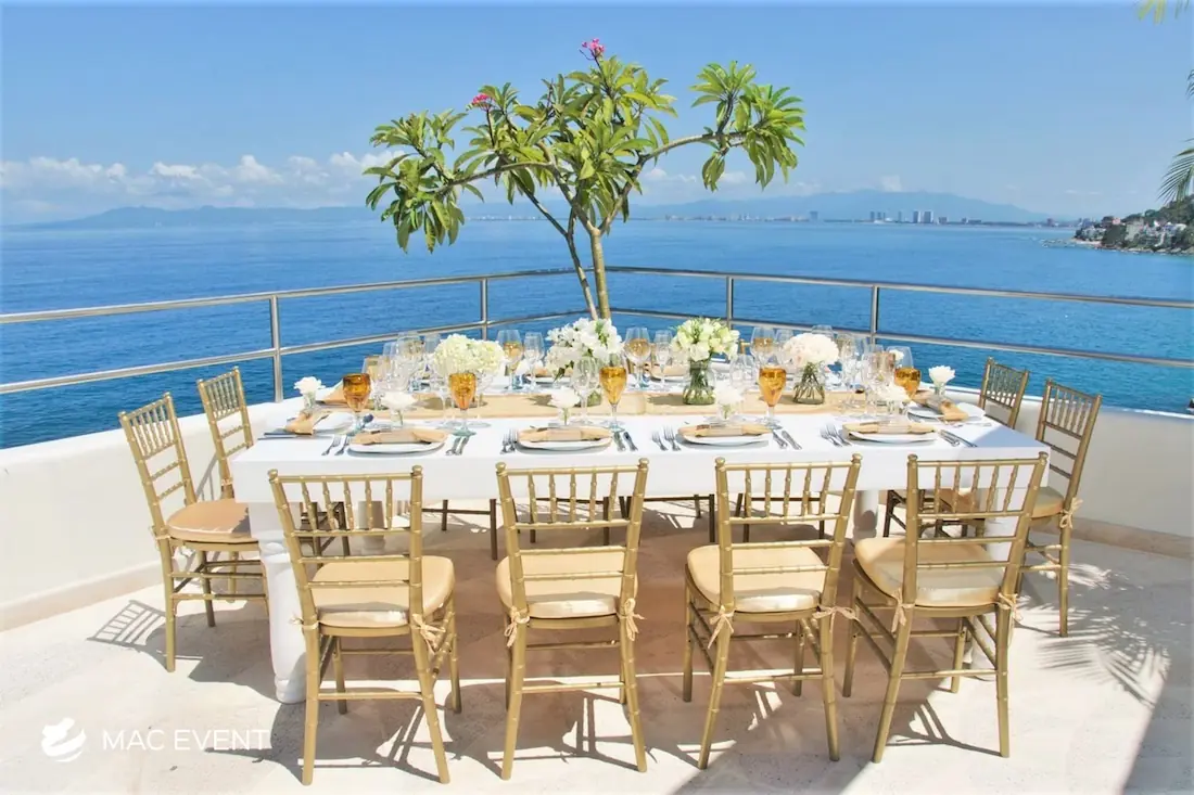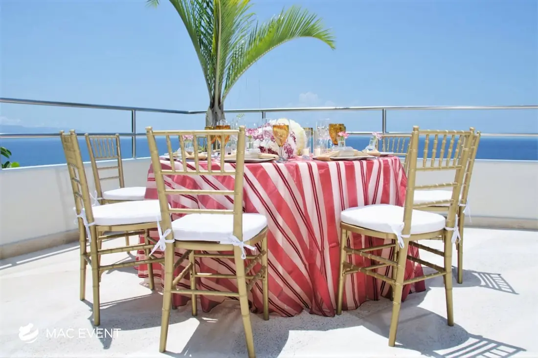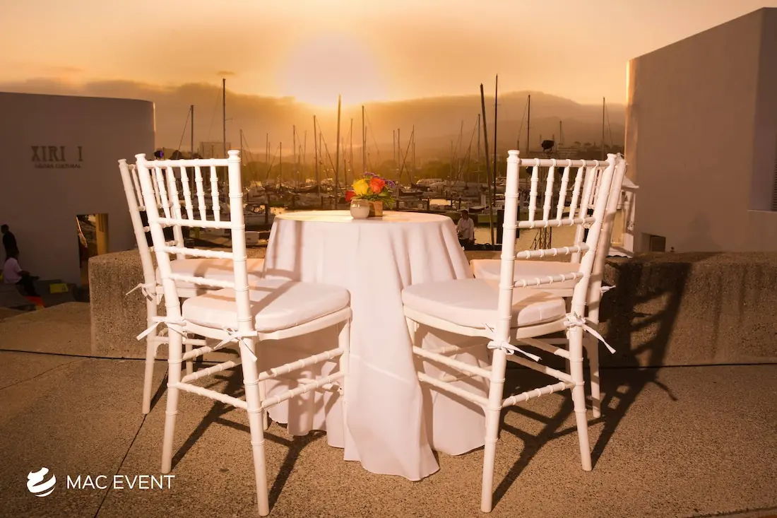 The resin chiavari chair, also known as a tiffany chair, is a popular choice for elegant weddings, private parties, and corporate events in Bahia de Banderas. Its timeless design and glossy finish add a touch of sophistication to any setting, whether on the beach, in a garden, or at an indoor venue. Made from durable resin, this chiavari chair rental combines beauty and practicality as it is lightweight, sturdy, and suitable for any environment. Renting tiffany chairs ensures a coordinated and polished look that complements your décor while keeping guests comfortable. For style, comfort, and reliability, resin chiavari chairs are the perfect seating solution for any event in Bahia de Banderas.