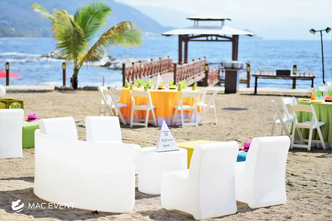 The illuminated lounge adds a vibrant and contemporary touch to weddings, parties, and corporate events in Bahia de Banderas. Featuring furniture with built-in LED lighting, this event lounge rental creates a dynamic atmosphere that transforms from day to night. Perfect for beach receptions, evening parties, or modern corporate gatherings, the illuminated lounge enhances your décor with colorful accents and a sleek glow. Renting illuminated lounges in Bahia de Banderas allows you to design lively, photo-worthy spaces that impress guests and elevate your event experience. For a bold and memorable setup, the illuminated lounge is the perfect centerpiece.