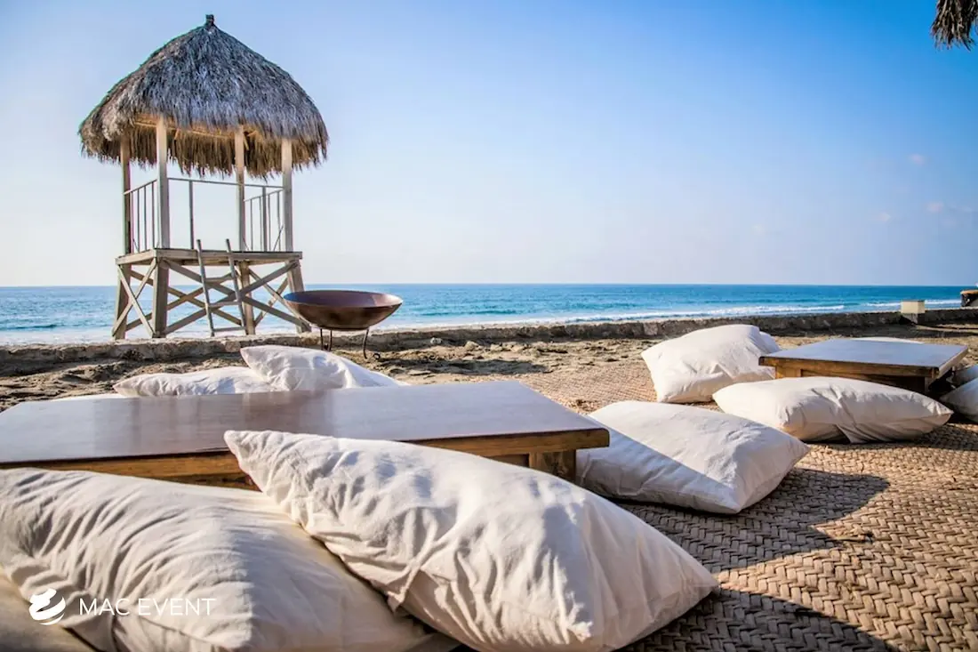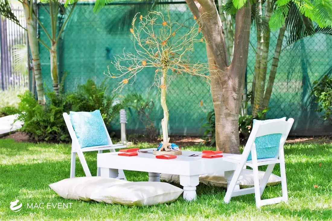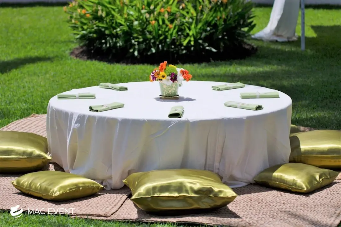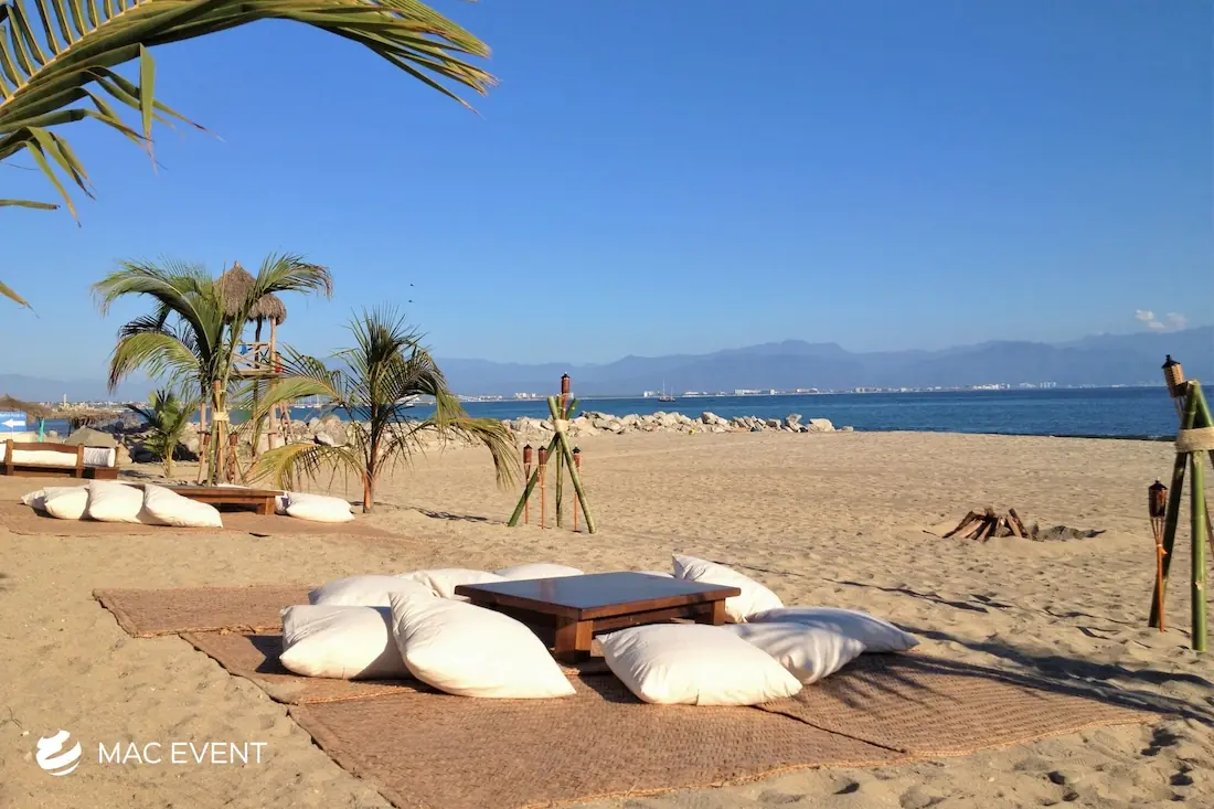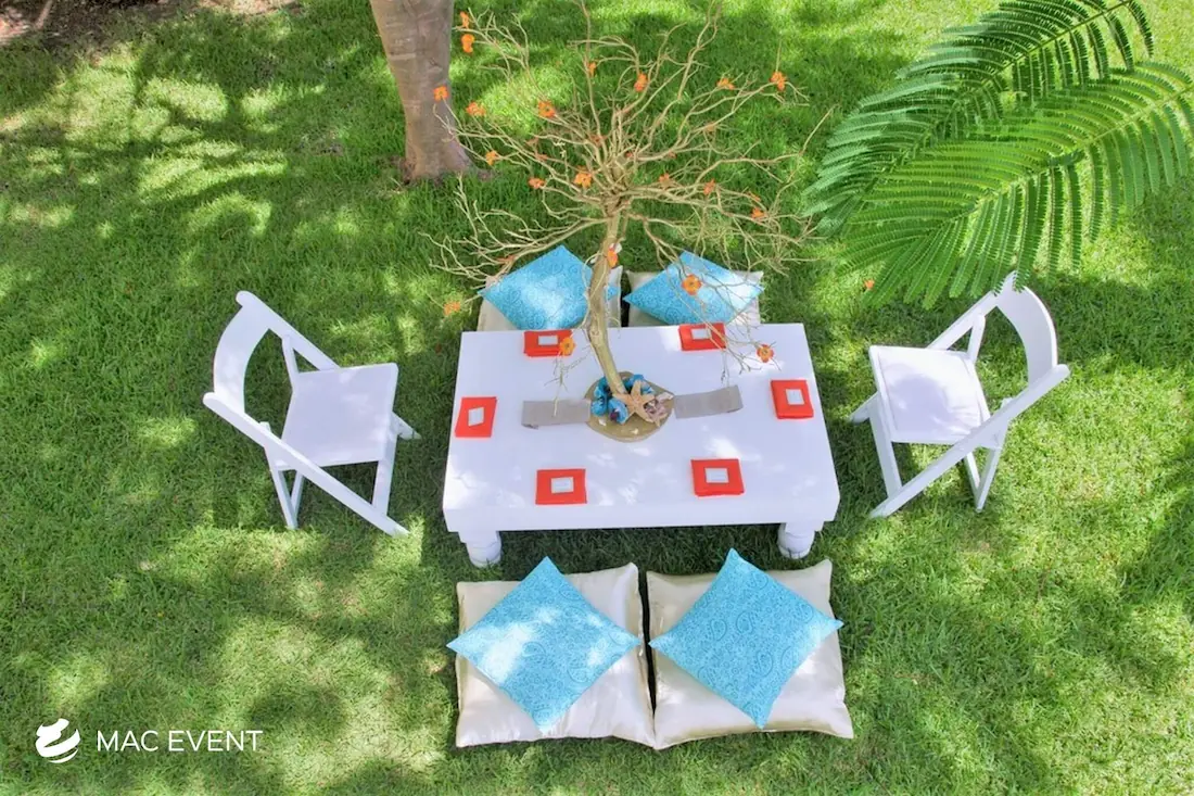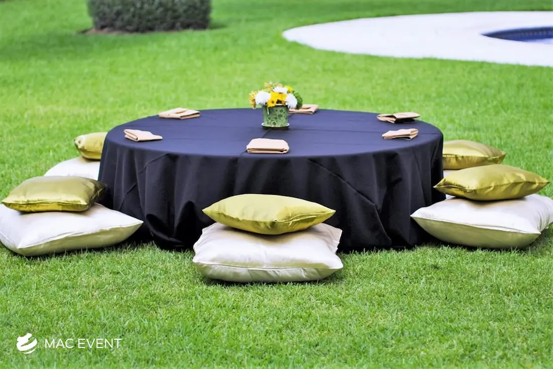 The picnic lounge brings a casual and charming vibe to weddings, beach gatherings, and corporate events in Bahia de Banderas. Designed for comfort and connection, this event lounge rental features low tables, floor pillows, and relaxed seating that create a cozy, outdoor-friendly atmosphere. Perfect for boho themes, tropical celebrations, or family-style setups, the picnic lounge encourages guests to sit back and enjoy the moment. Renting picnic lounges in Bahia de Banderas adds warmth, style, and a touch of creativity to your event décor. For a laid-back yet elegant experience, the picnic lounge is an ideal addition to any celebration.
