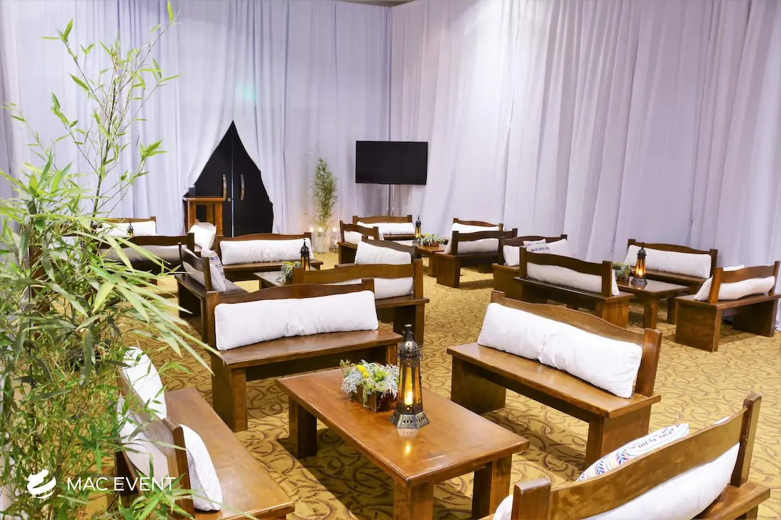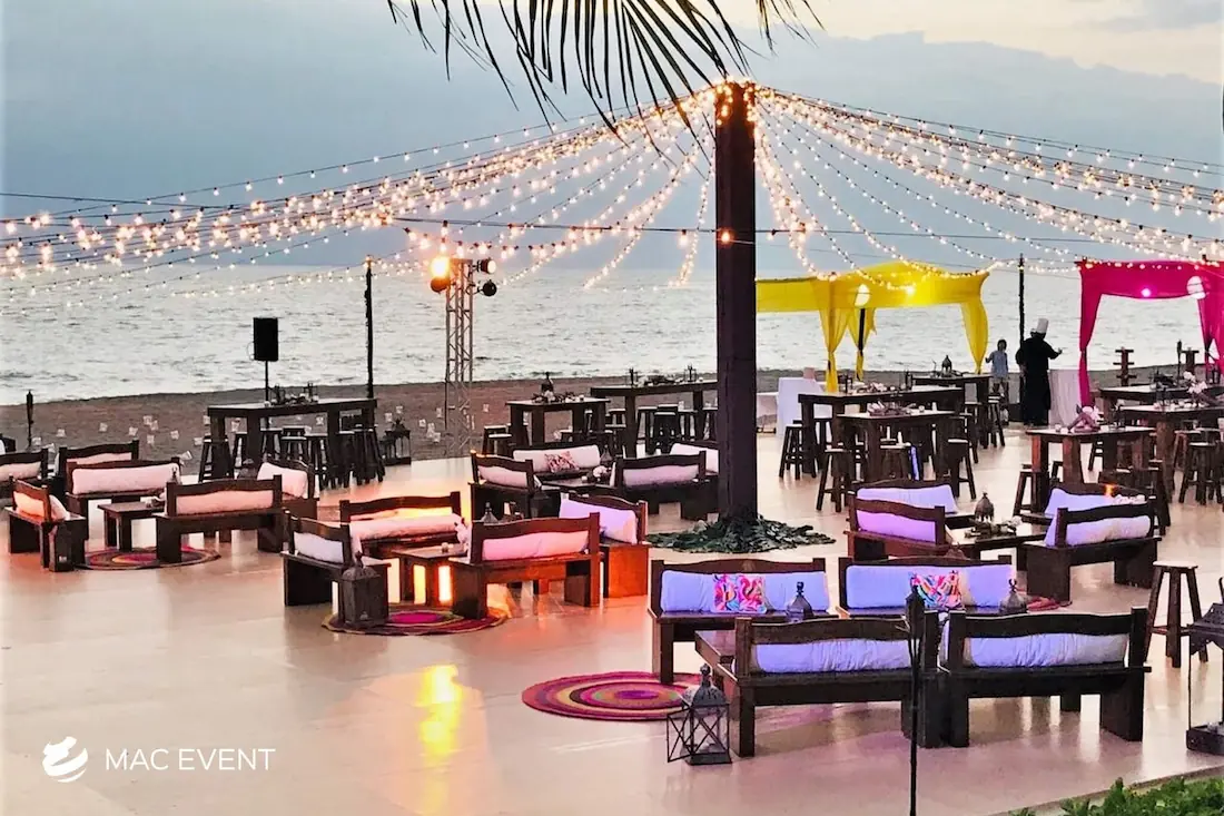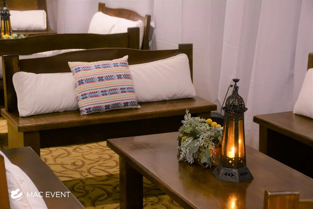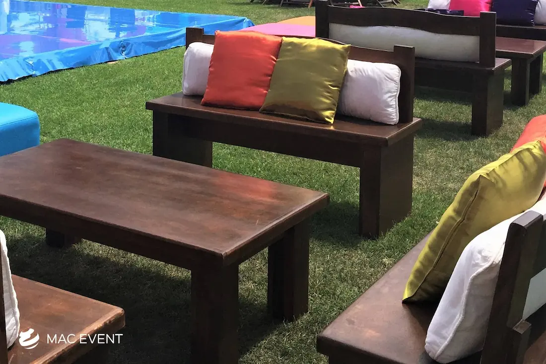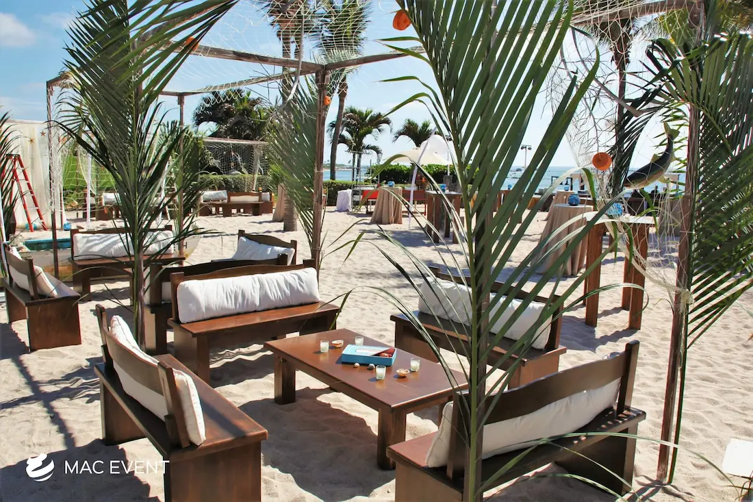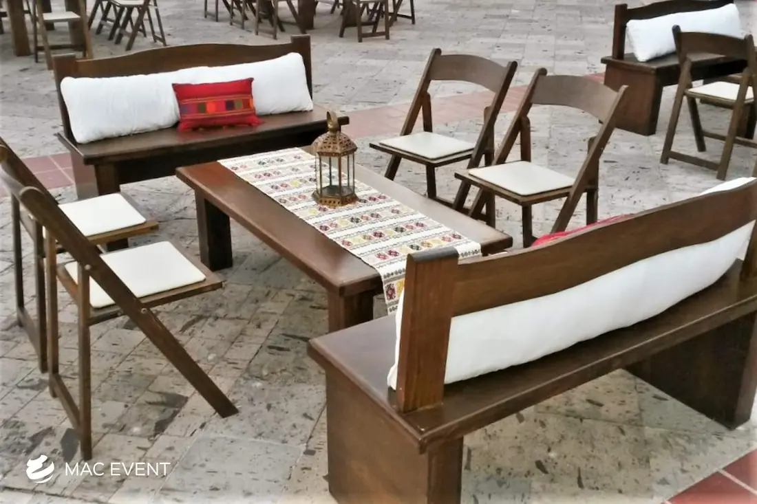 The rustic lounge adds warmth and natural beauty to weddings, beach parties, and corporate events in Bahia de Banderas. With its wooden textures, earthy tones, and cozy design, this event lounge rental creates a relaxed yet elegant atmosphere that complements tropical, boho, or countryside themes. Ideal for outdoor receptions and social areas, the rustic lounge invites guests to unwind and connect in comfort. Renting rustic lounges in Bahia de Banderas allows you to design charming and cohesive spaces that feel authentic and stylish. For a welcoming setup that blends nature and sophistication, the rustic lounge is an excellent choice.
