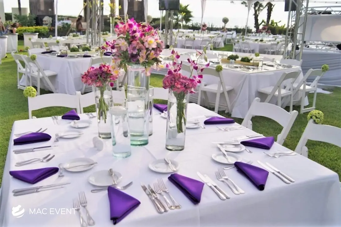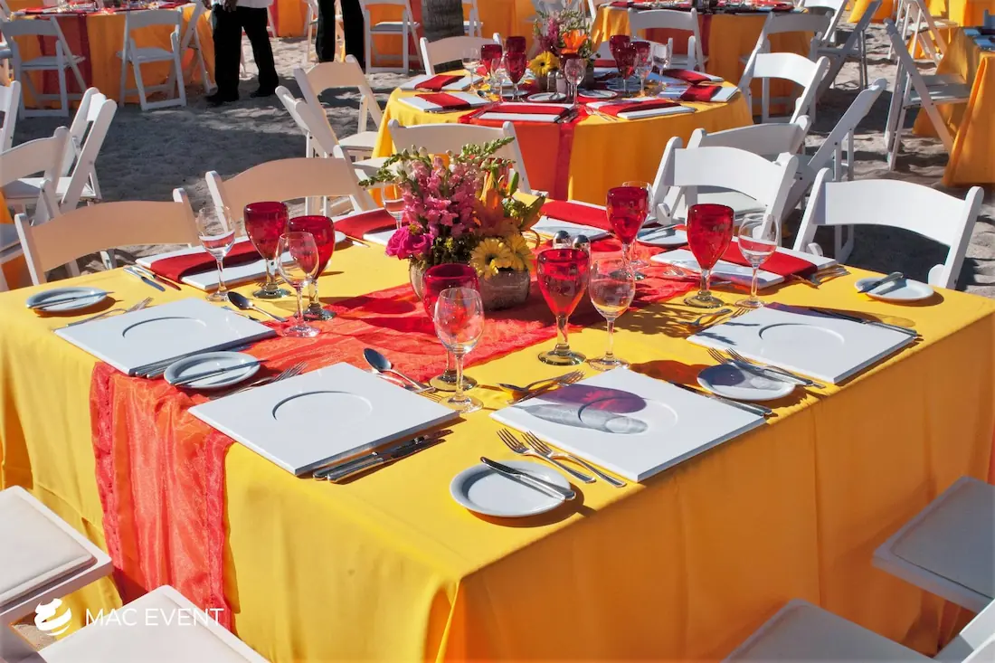 The square table offers a modern and balanced look for weddings, private parties, and corporate events in Bahia de Banderas. Its clean lines and symmetrical shape make it ideal for intimate seating arrangements and stylish dining setups. This event table rental brings a contemporary touch to any décor while maintaining practicality and comfort for guests. Renting square tables in Bahia de Banderas allows you to create a unique layout that stands out from traditional designs, blending elegance with functionality. For a sophisticated and well-organized event space, the square table is a perfect choice.