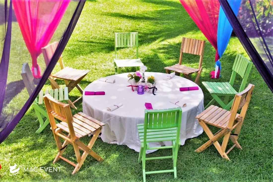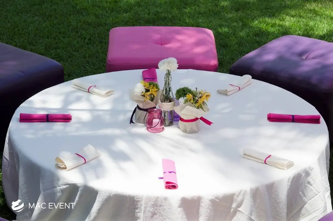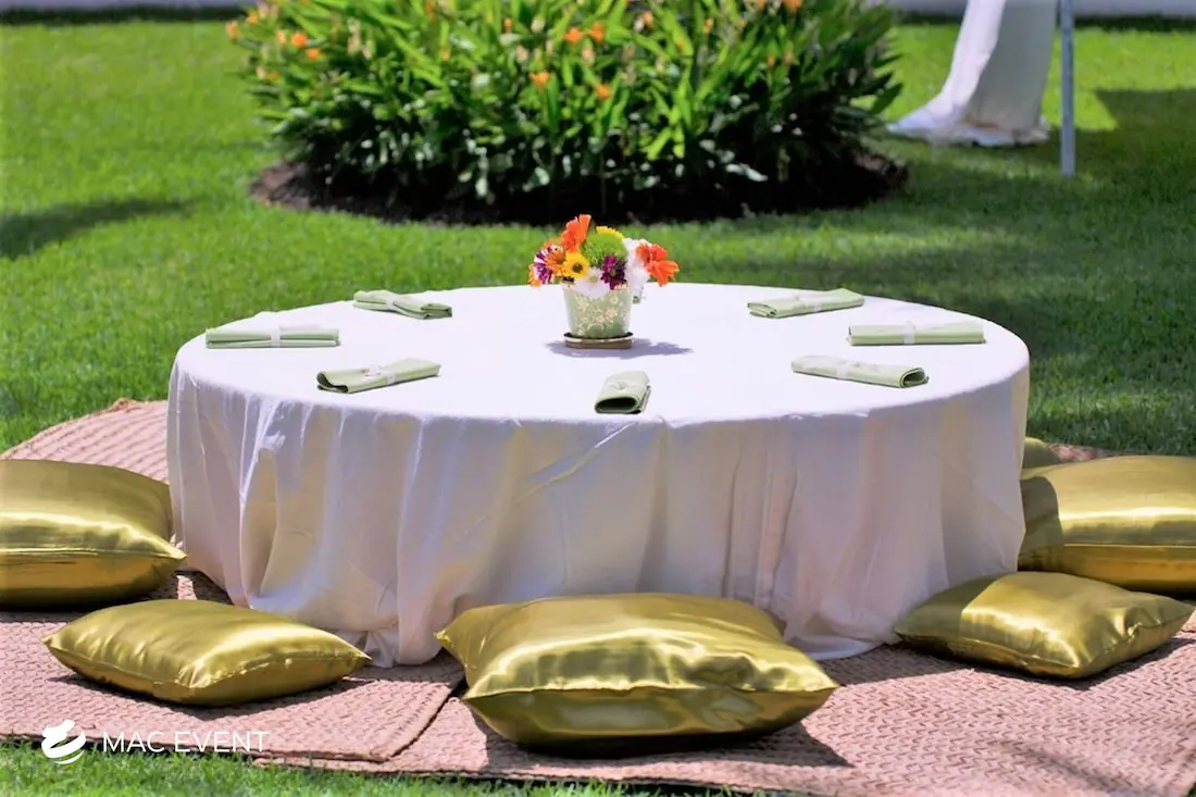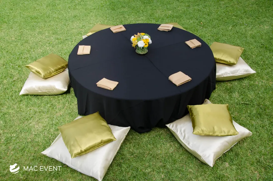 The round coffee table brings elegance and comfort to weddings, parties, and corporate events in Bahia de Banderas. Its smooth circular design encourages conversation and creates a welcoming atmosphere in lounge or cocktail areas. This event table rental pairs beautifully with sofas, ottomans, and floor pillows, adding balance and flow to your décor. Renting round coffee tables in Bahia de Banderas allows you to design cozy, stylish spaces where guests can relax and enjoy the celebration. For a refined yet relaxed touch, the round coffee table is the perfect addition to any event setup.