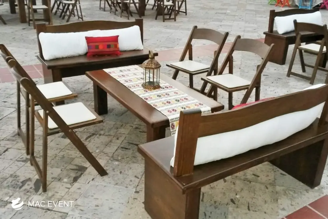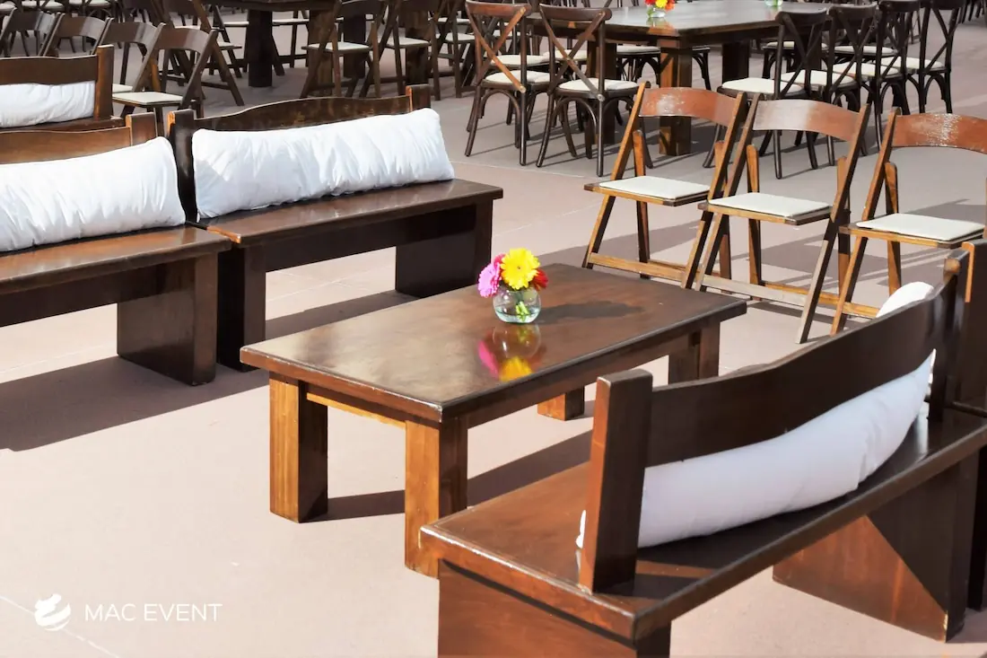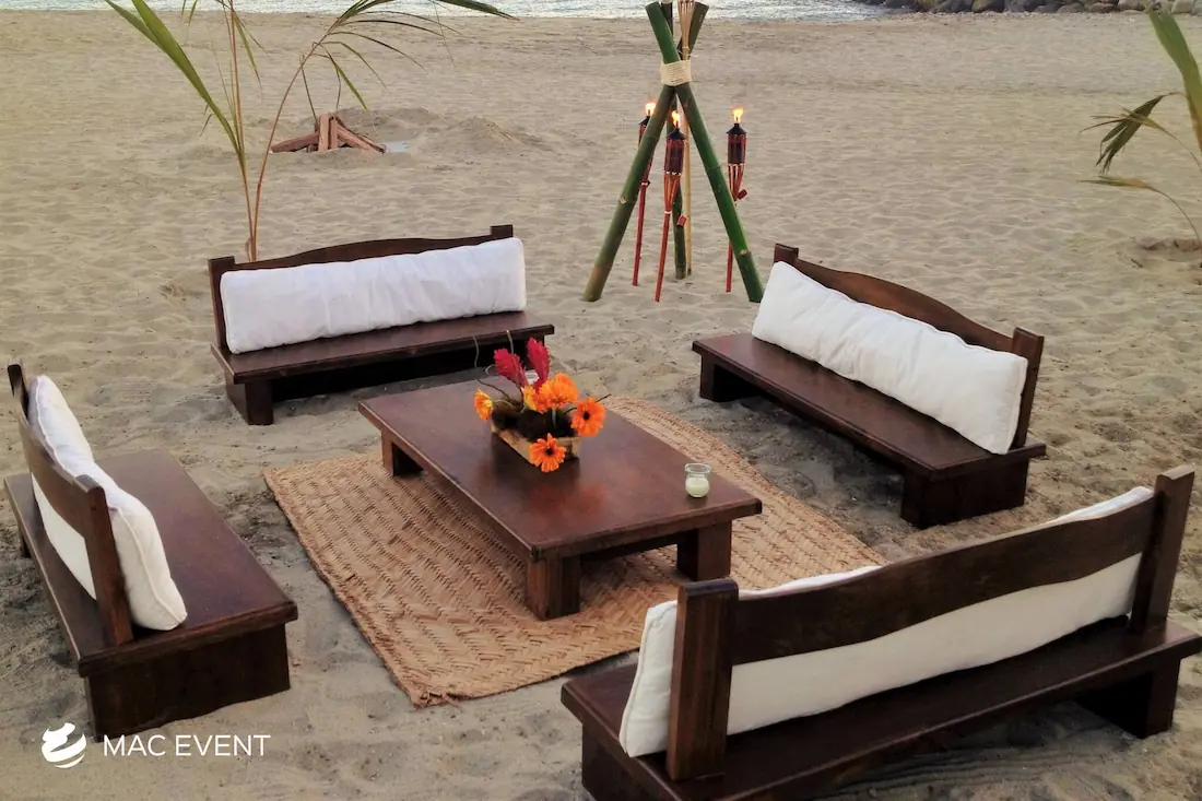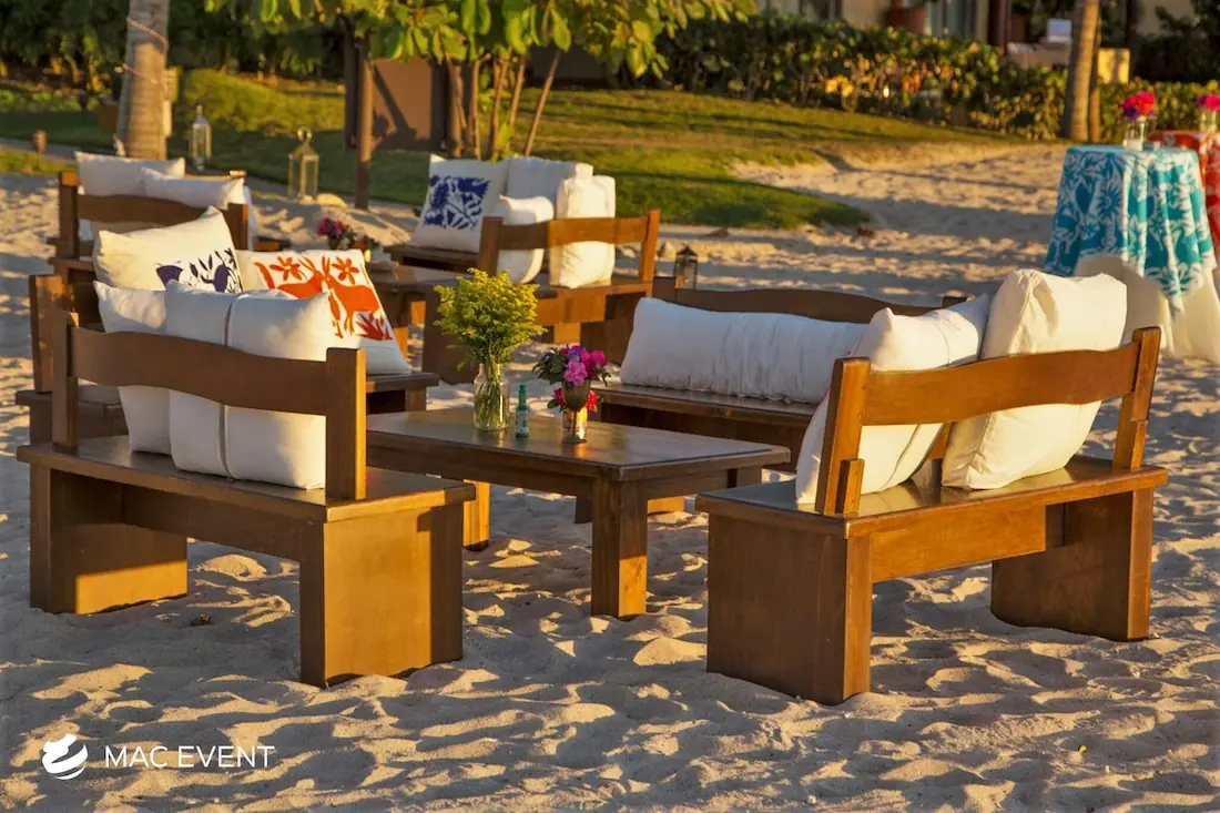 The rustic coffee table adds warmth and character to weddings, private parties, and corporate events in Bahia de Banderas. With its natural wood texture and handcrafted design, this event table rental creates a cozy and inviting atmosphere that blends beautifully with beach, boho, or countryside themes. Ideal for lounge areas, cocktail setups, or outdoor receptions, rustic coffee tables provide both charm and functionality. Renting rustic coffee tables in Bahia de Banderas allows you to design relaxed yet elegant spaces where guests can gather comfortably. For a natural and timeless touch, the rustic coffee table is a perfect choice for any event.