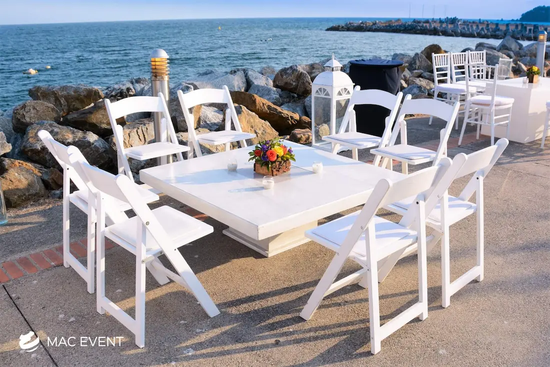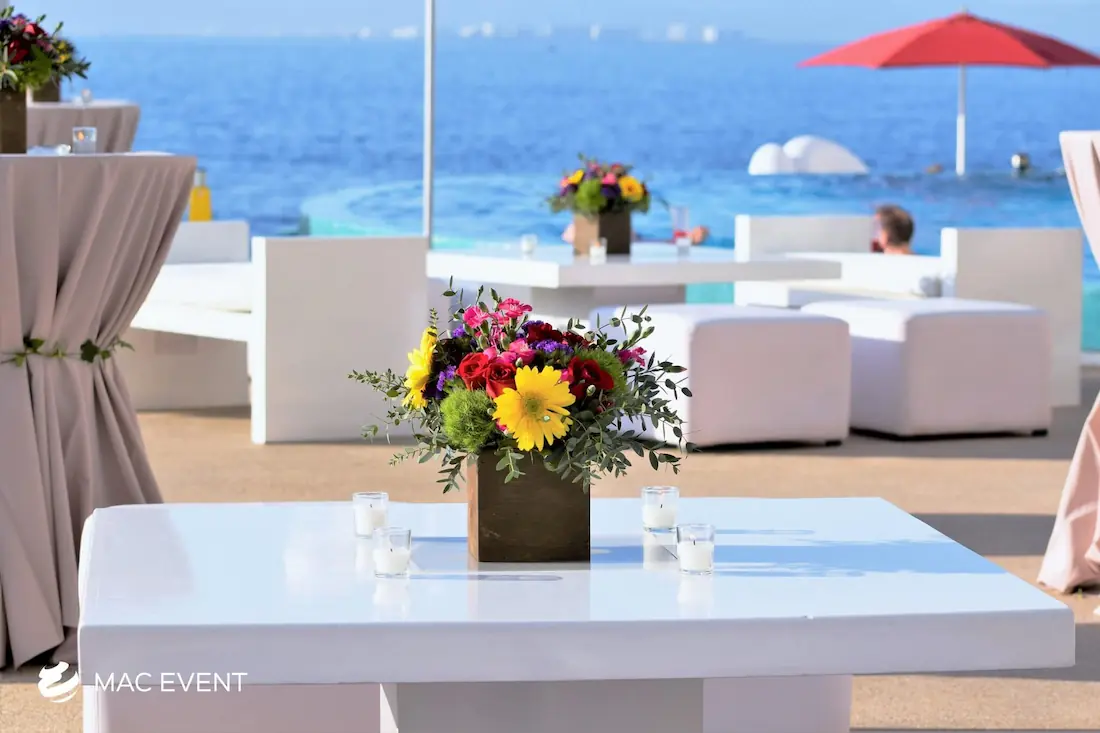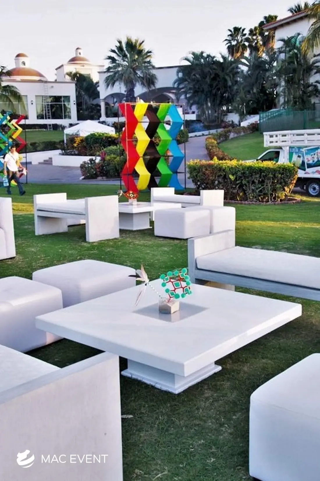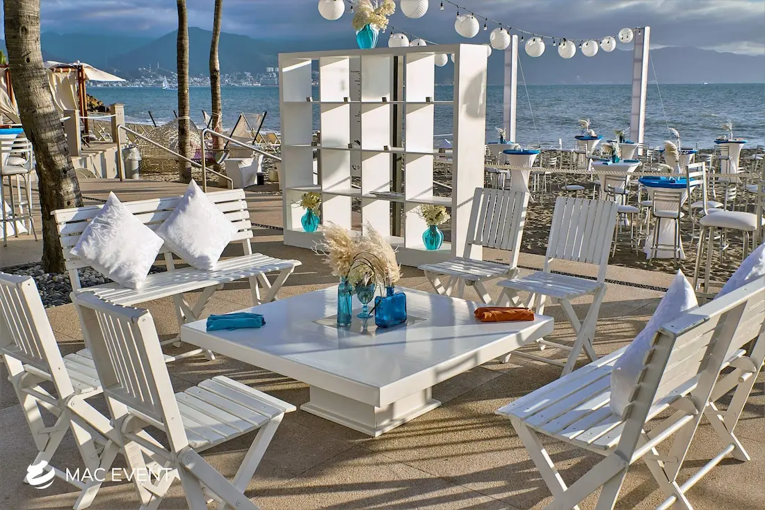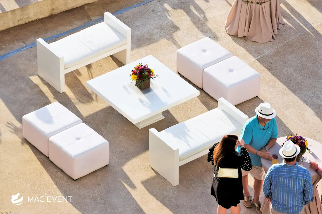 The wooden acrylic coffee table blends natural texture with modern transparency, making it a standout piece for weddings, parties, and corporate events in Bahia de Banderas. Its wooden base adds warmth and character, while the clear acrylic top gives a sleek, contemporary finish that complements any décor style. This event table rental works beautifully in lounge areas, cocktail spaces, or outdoor receptions, offering both function and visual appeal. Renting wooden acrylic coffee tables in Bahia de Banderas allows you to create elegant, inviting spaces where guests can relax in style. For a perfect mix of rustic charm and modern design, this table is an exceptional choice.
