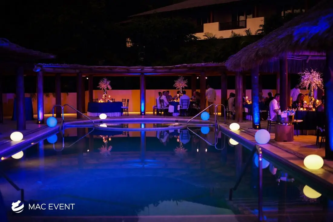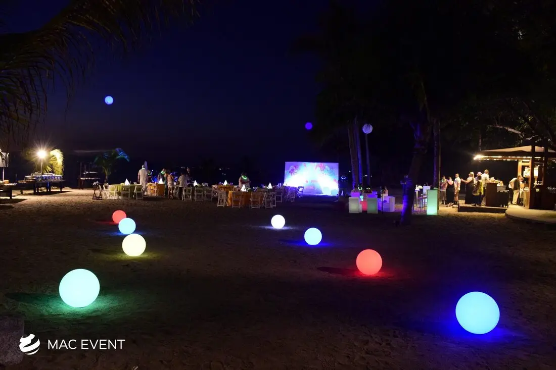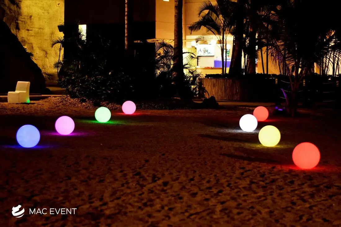 The orb lights add a modern and enchanting touch to weddings, parties, and corporate events in Bahia de Banderas. With their spherical glow and elegant design, this event lighting rental creates a captivating atmosphere that enhances both indoor and outdoor spaces. Perfect for hanging above dining areas, floating in pools, or accenting garden setups, orb lights bring sophistication and creativity to your décor. Renting orb lights in Bahia de Banderas ensures professional installation, high-quality lighting, and seamless integration with your event theme. For a stylish and magical ambiance that impresses guests, the orb lights are a perfect choice.