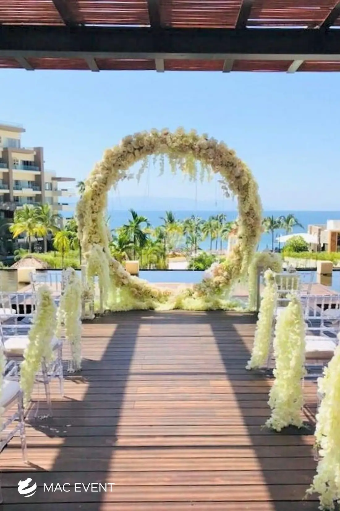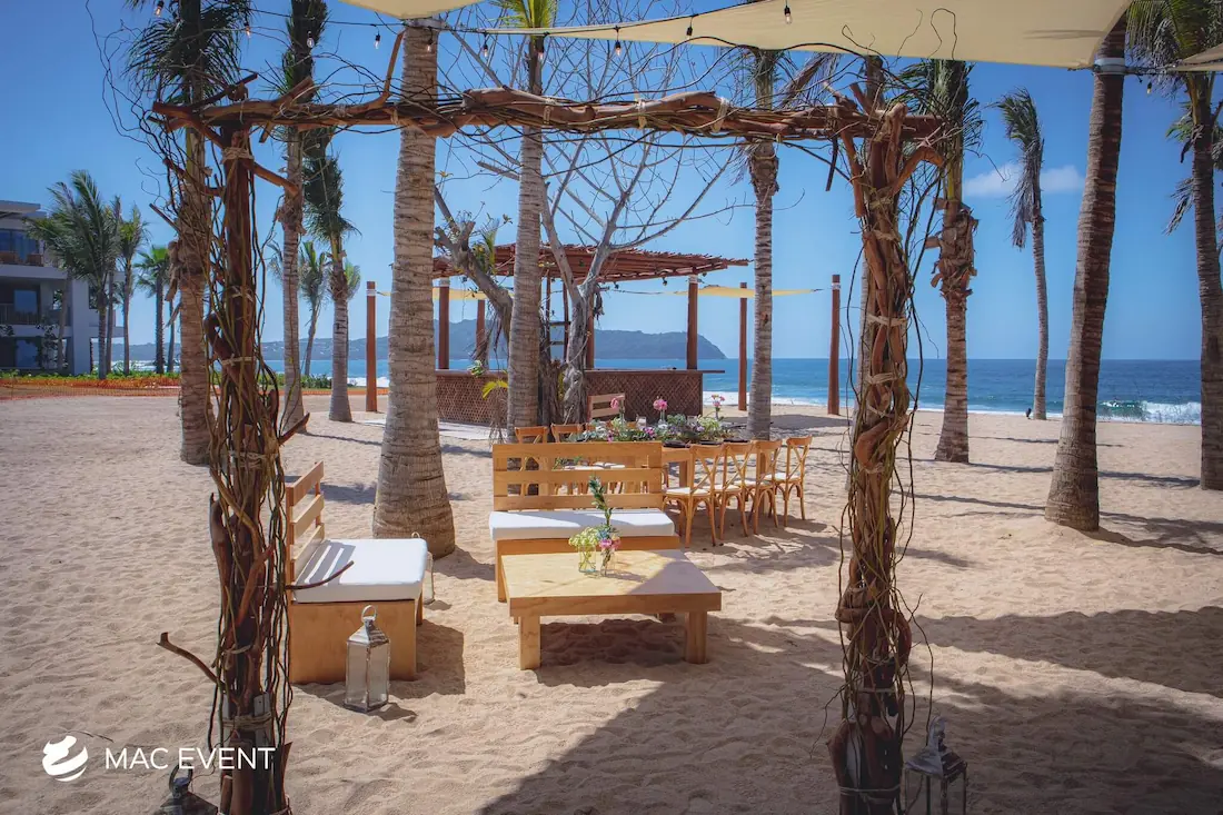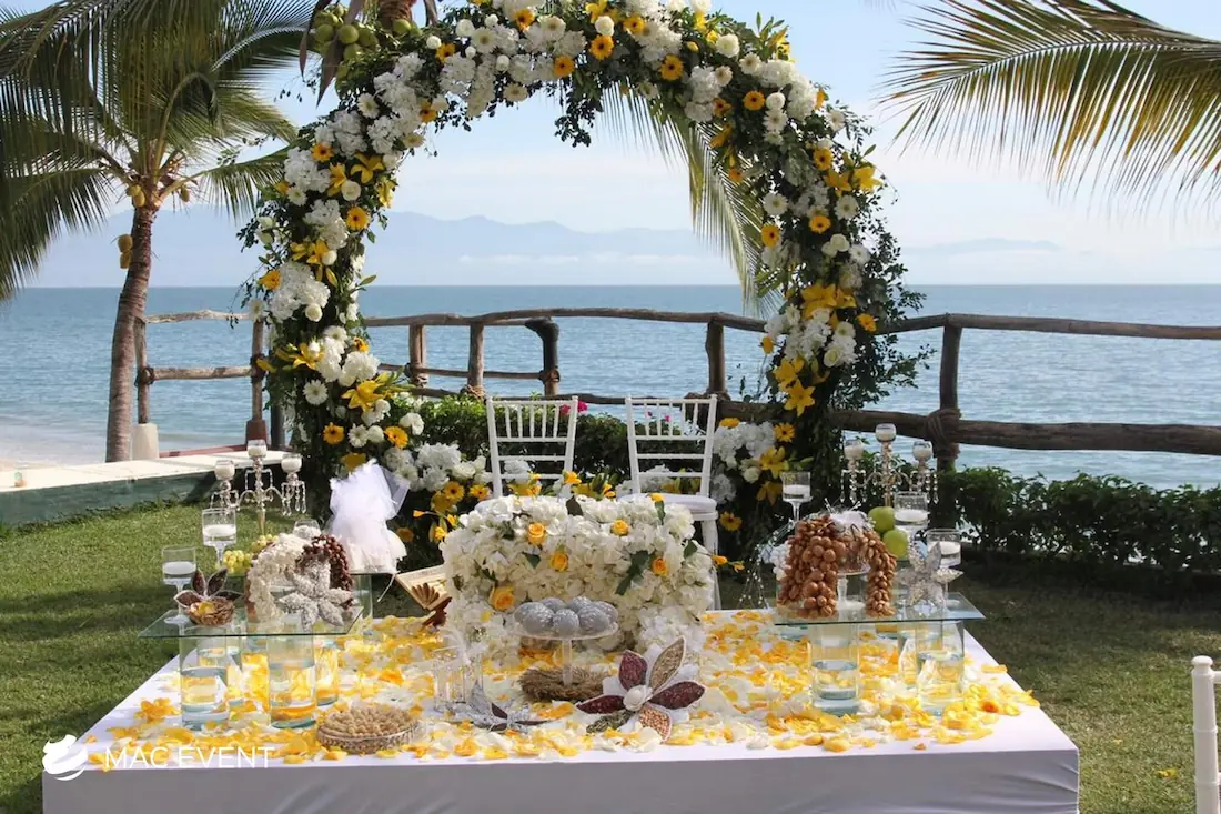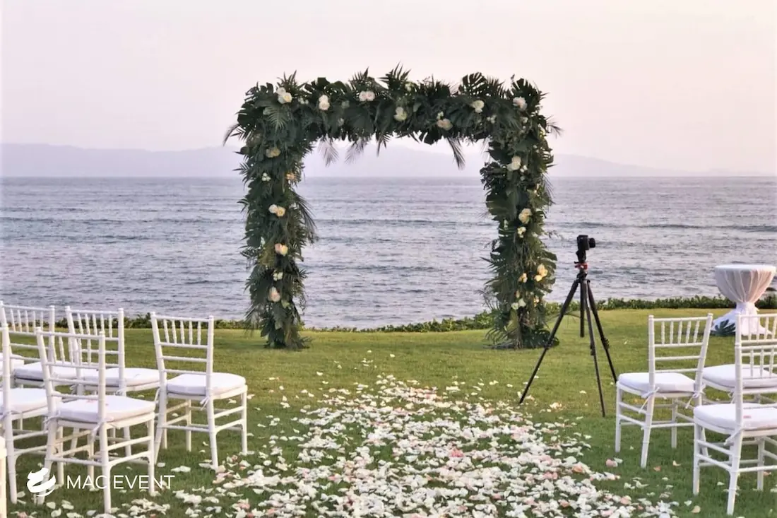 The wedding arch is a beautiful focal point that frames one of the most meaningful moments of a ceremony in Bahia de Banderas. Symbolizing unity and new beginnings, this wedding décor rental can be styled with flowers, fabric, or greenery to match your theme and setting. Perfect for beach weddings, garden ceremonies, or private venues, the wedding arch enhances the space with elegance and romance. Renting wedding arches in Bahia de Banderas ensures professional setup and a design that complements your overall décor. For a timeless and picture-perfect backdrop, the wedding arch is an essential element of every ceremony.