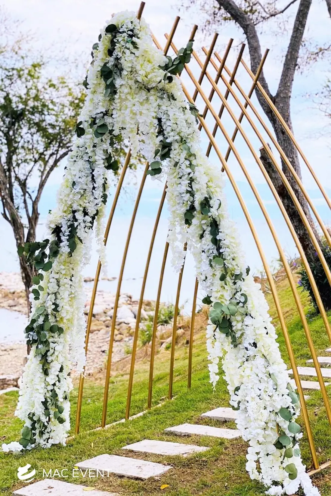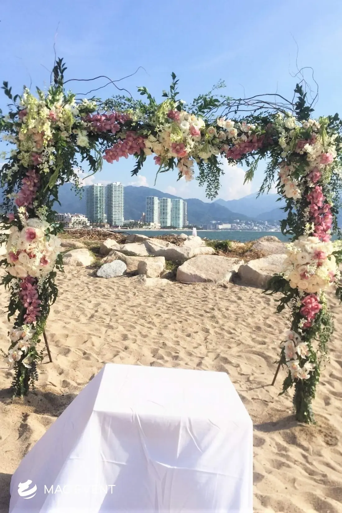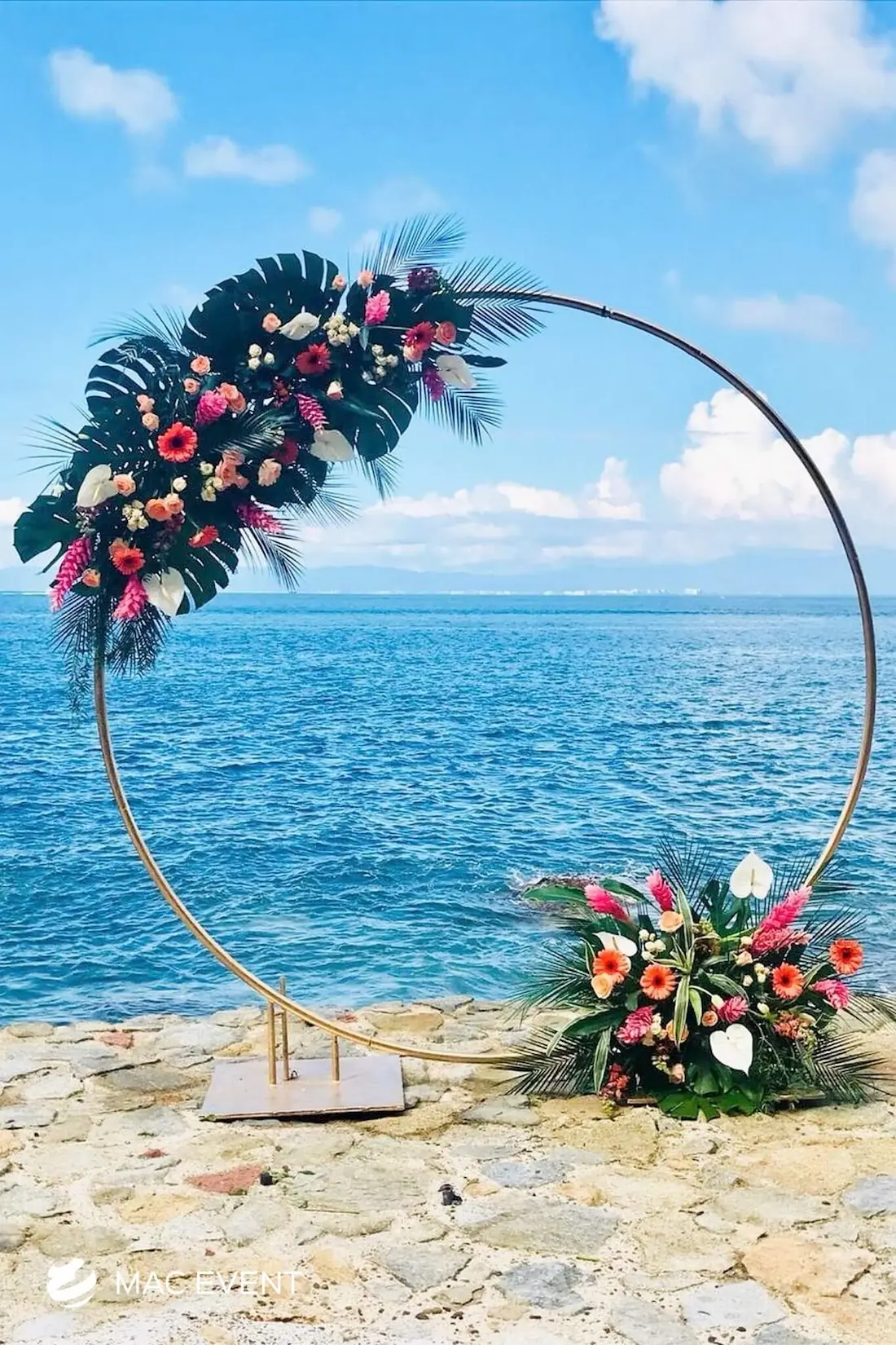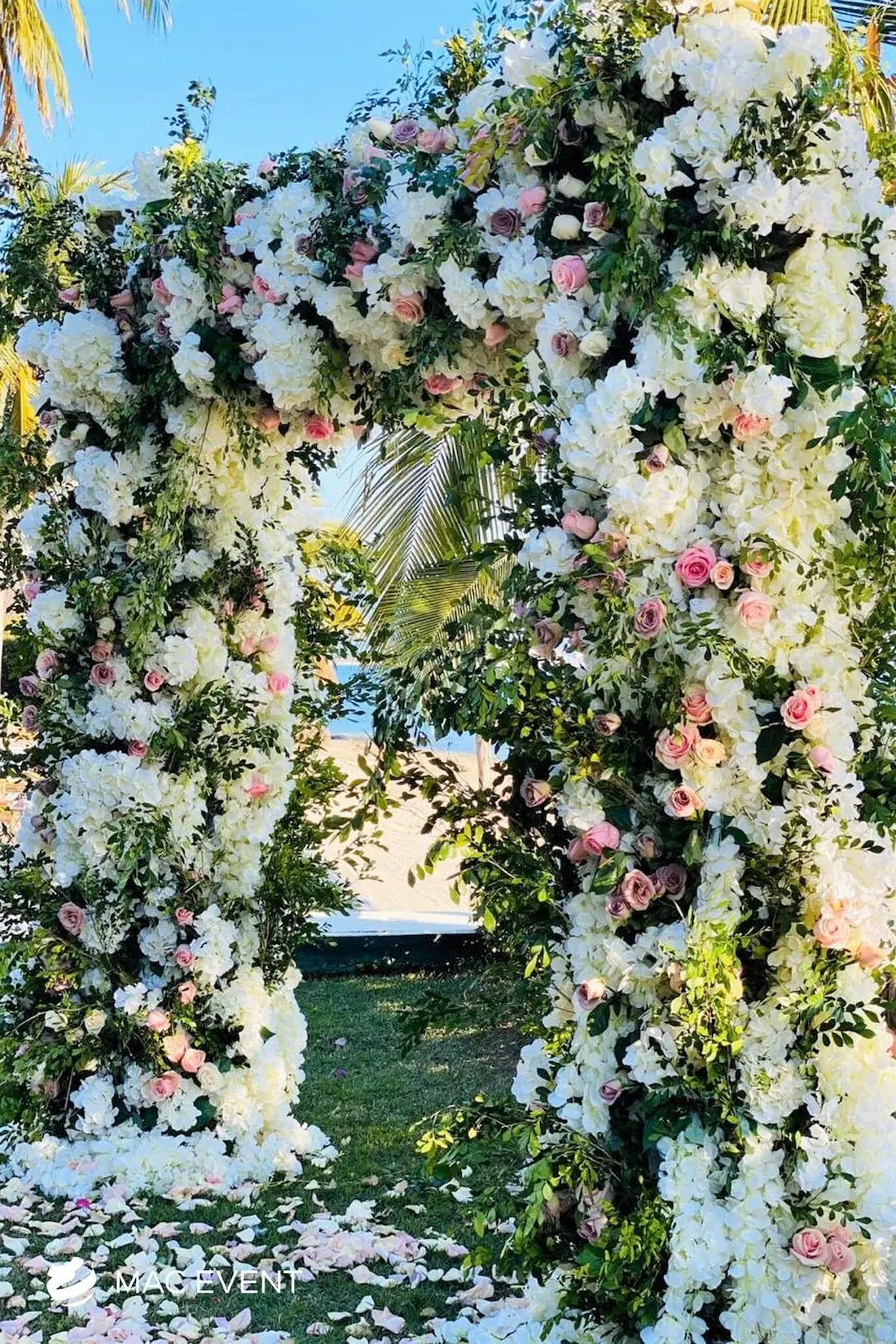 The wedding arch is a beautiful focal point that frames one of the most meaningful moments of a ceremony in Bahia de Banderas. Symbolizing unity and new beginnings, this wedding décor rental can be styled with flowers, fabric, or greenery to match your theme and setting. Perfect for beach weddings, garden ceremonies, or private venues, the wedding arch enhances the space with elegance and romance. Renting wedding arches in Bahia de Banderas ensures professional setup and a design that complements your overall décor. For a timeless and picture-perfect backdrop, the wedding arch is an essential element of every ceremony.
