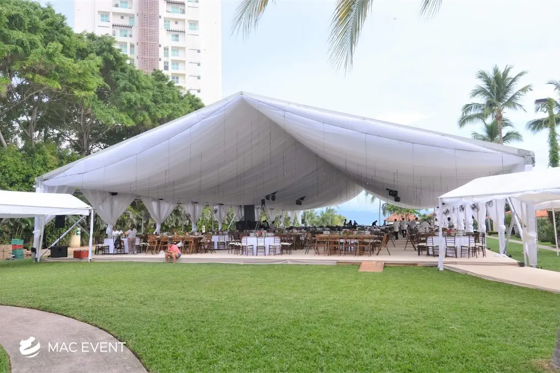 The tent provides both function and elegance for weddings, parties, and corporate events in Bahia de Banderas. Ideal for outdoor venues, this event structure rental offers protection from sun, wind, or rain while maintaining a stylish and comfortable atmosphere. Available in a variety of styles such as clear-top, white canopy, or sailcloth designs, the tent can be customized with lighting, drapery, and décor to match your event’s theme. Renting tents in Bahia de Banderas ensures professional installation, durability, and a polished presentation. For a practical and elegant solution that enhances any celebration, the tent is an essential element.